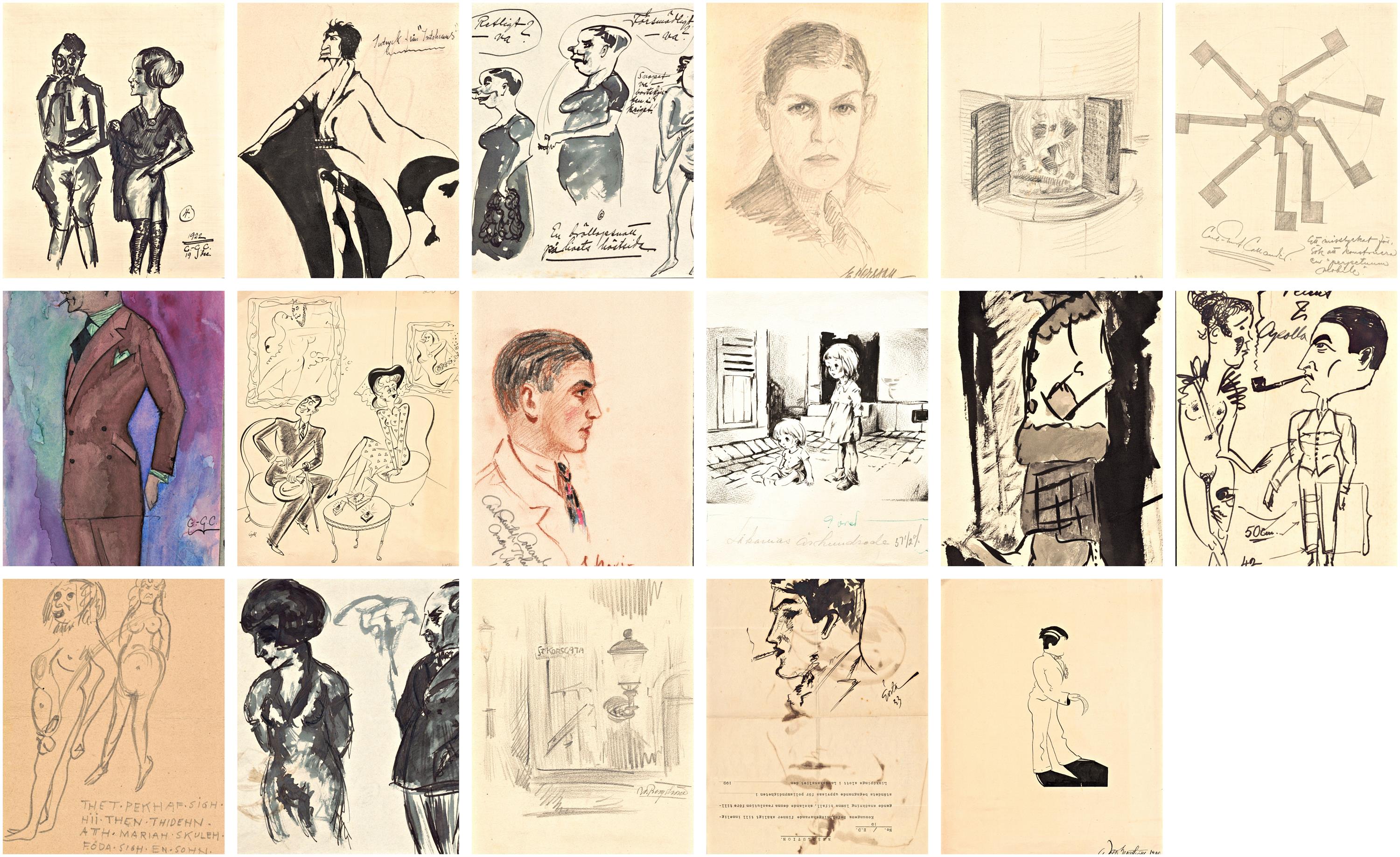 set kreseb a akvarelů, některé signované Carl-Gustaf Callander