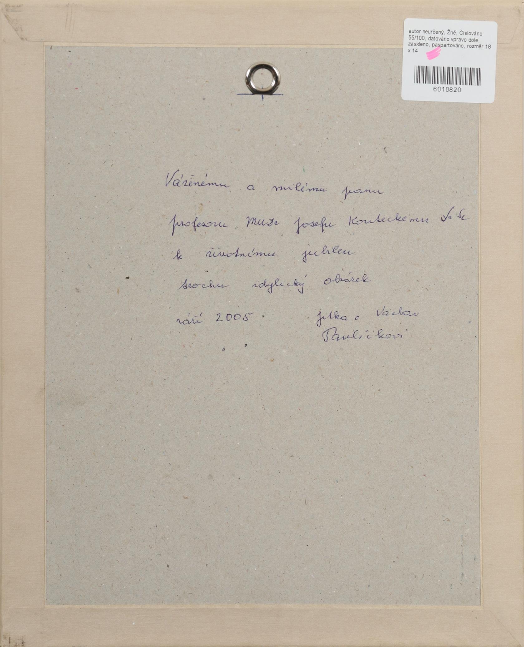 Číslováno 55/100, datováno vpravo dole, zaskleno, paspartováno