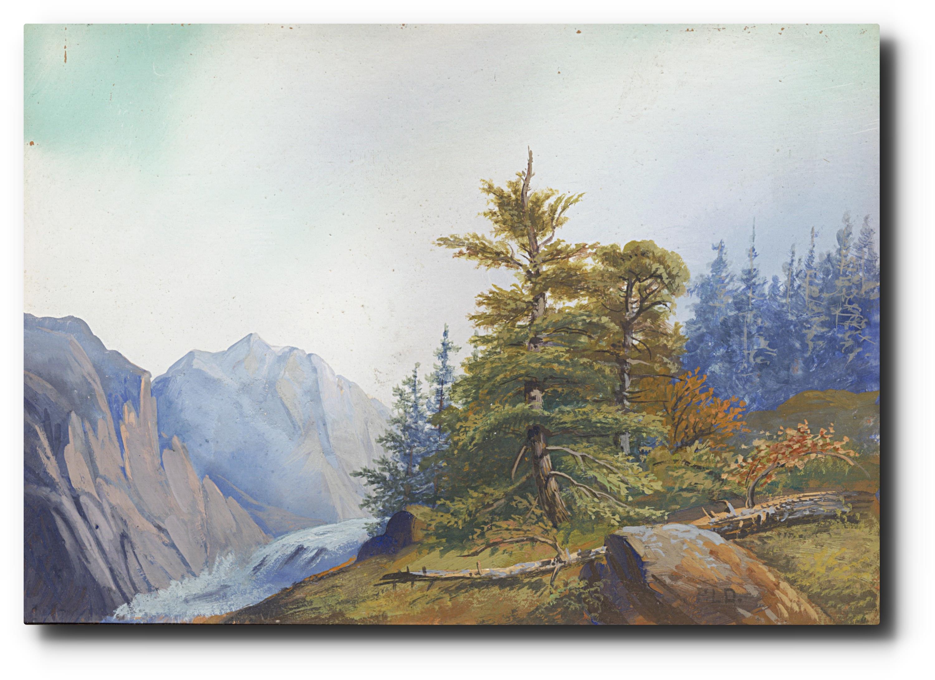 Monogramováno vpravo dole, paspartováno a zaskleno.
