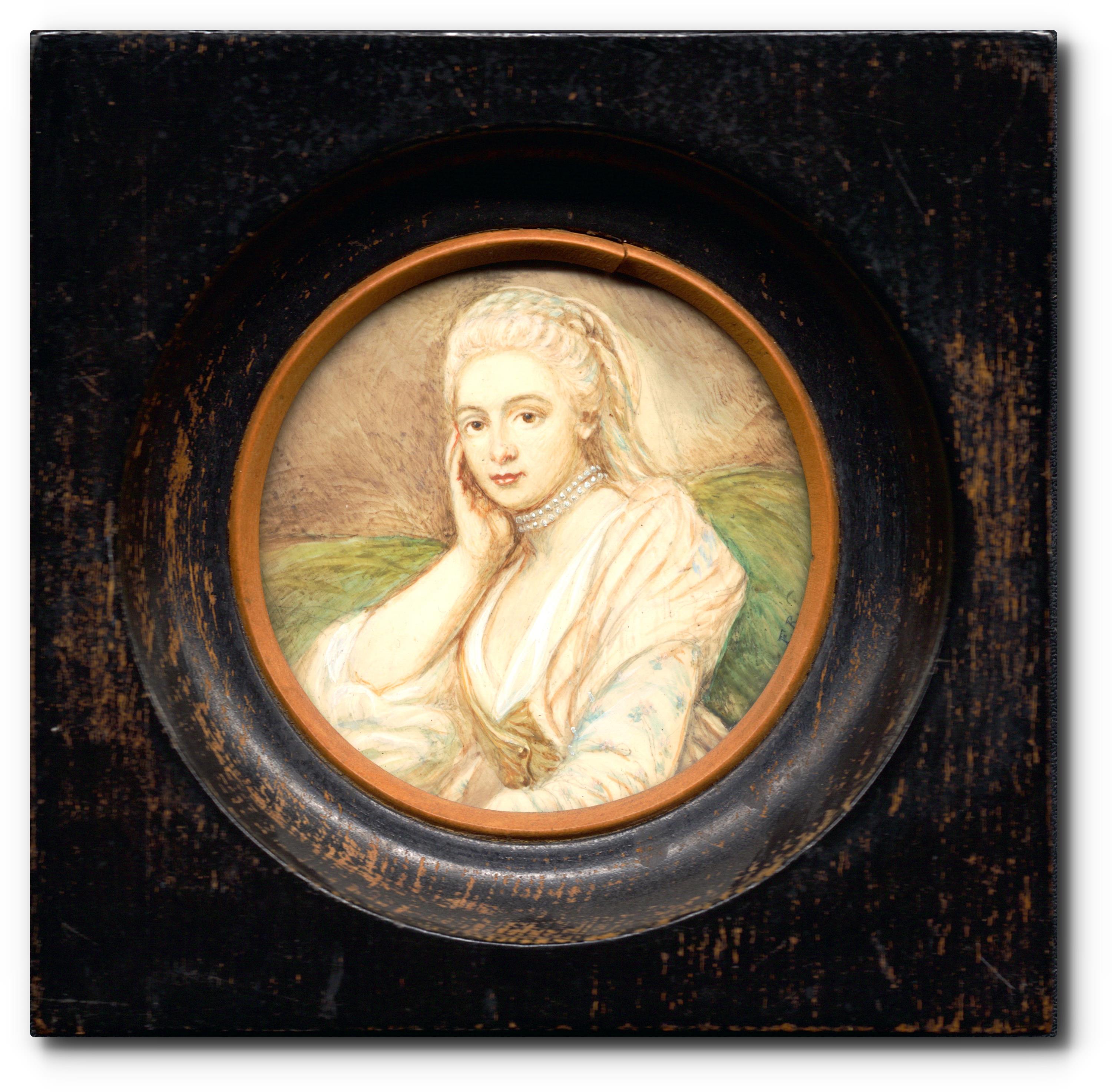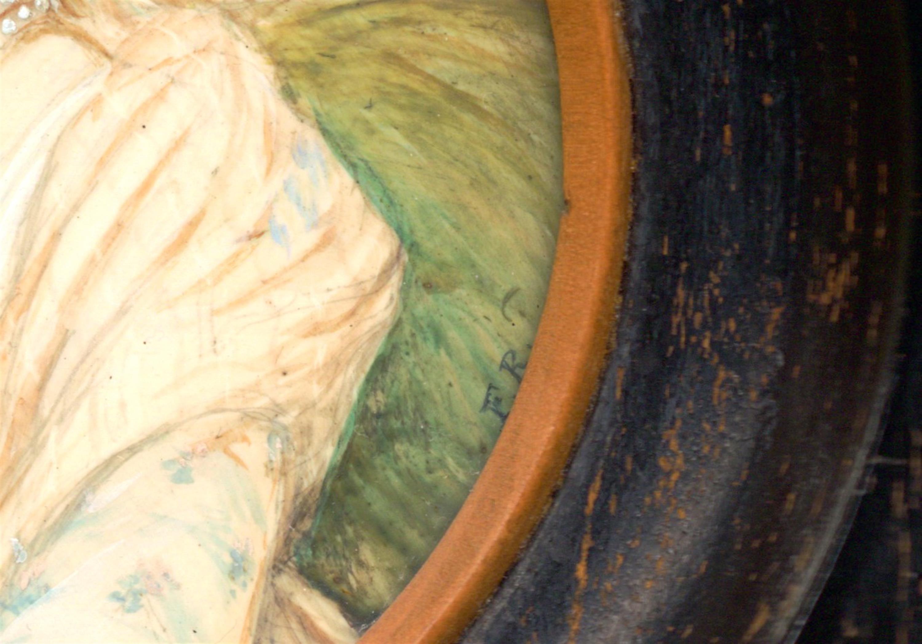 malba na skle, signováno iniciálami F.R., rámováno