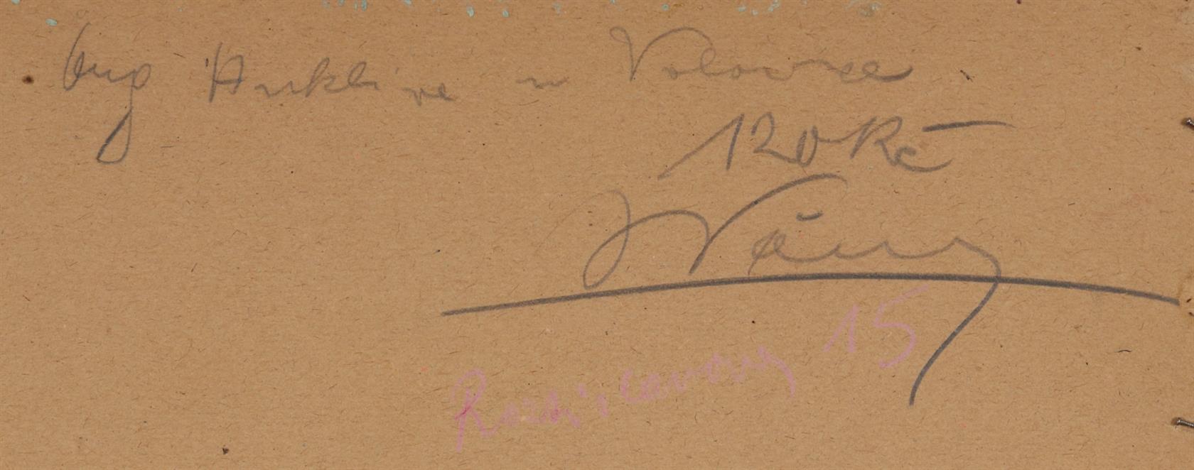 signováno vpravo dole a pod ochranným papírem na reversu včetně názvu obrazu
