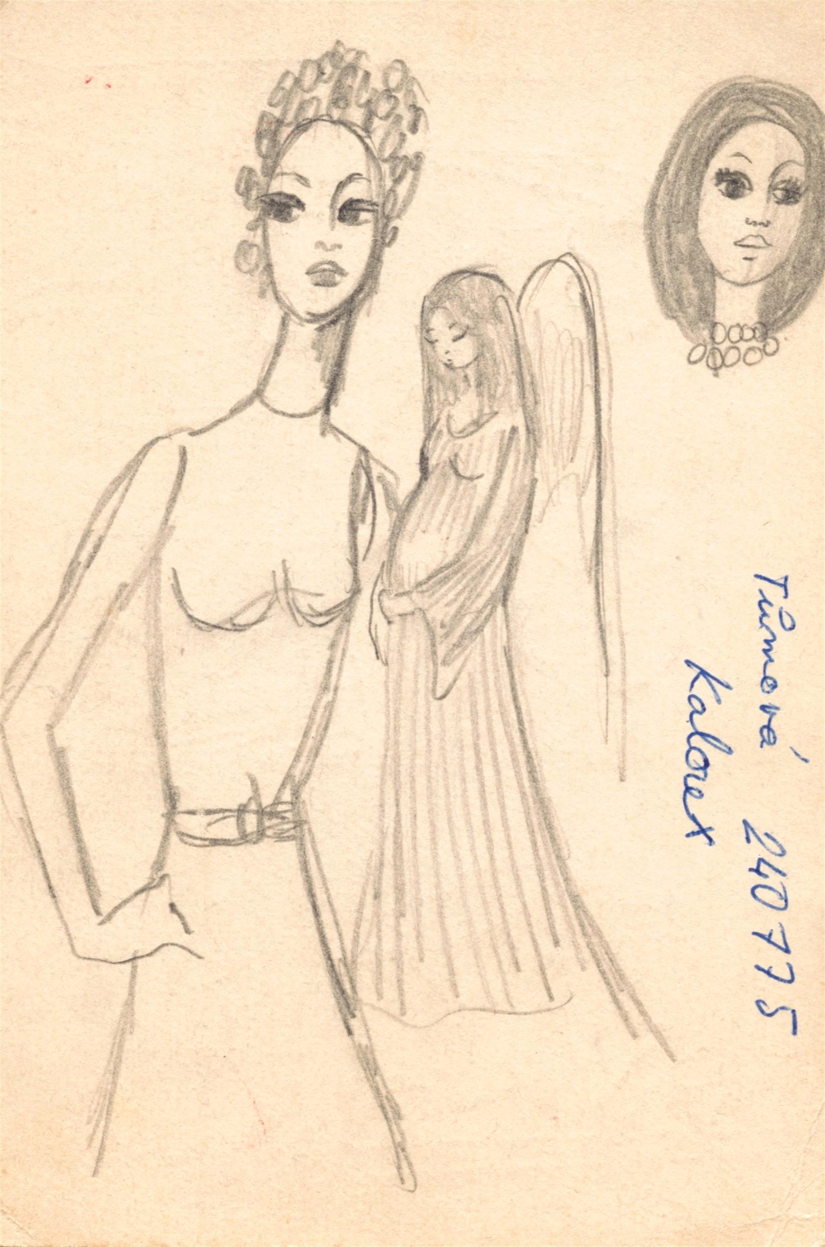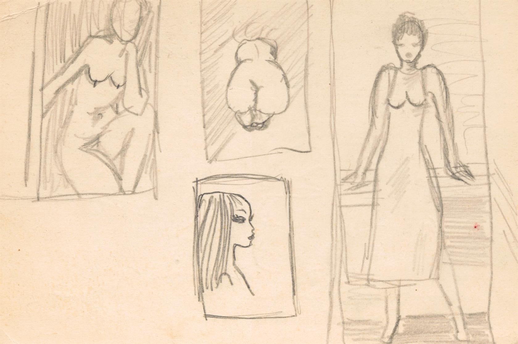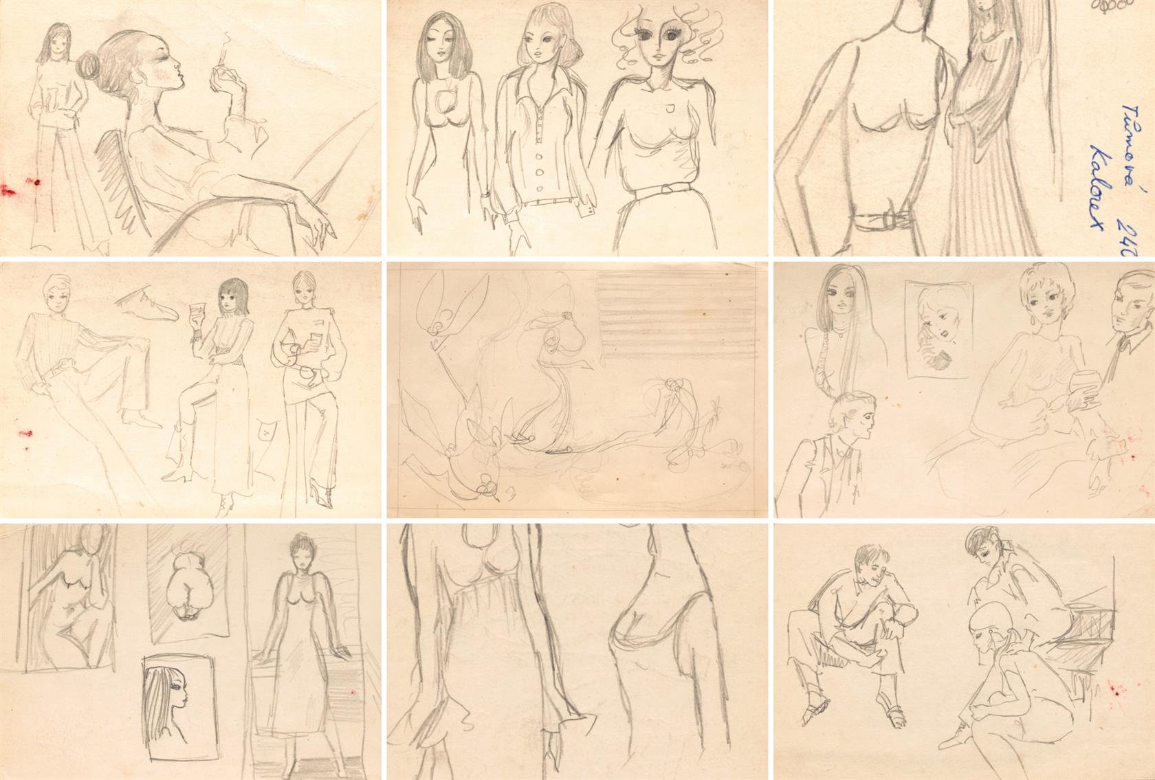 4x oboustranná kresba. 1x jednostranná kresba, volné listy