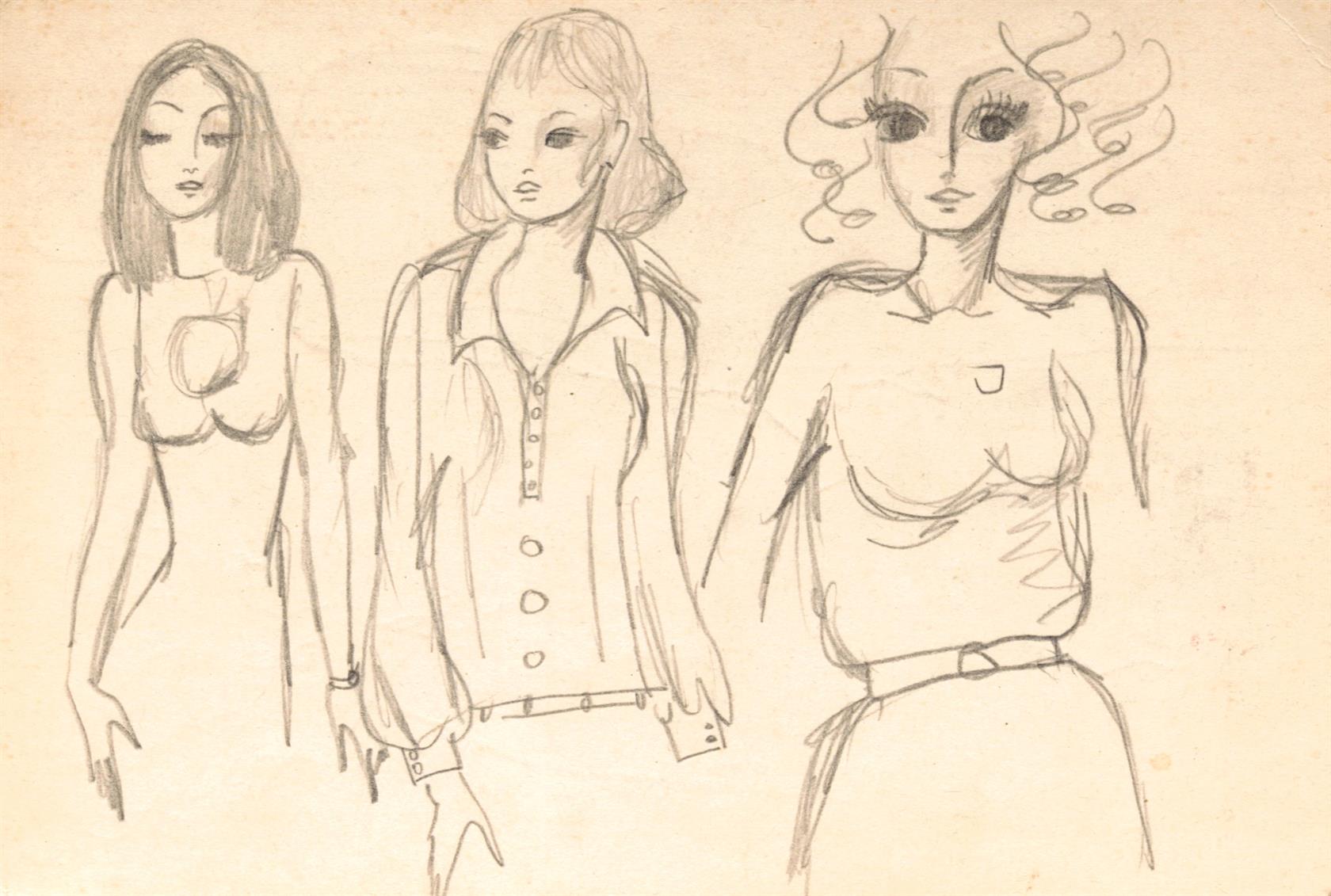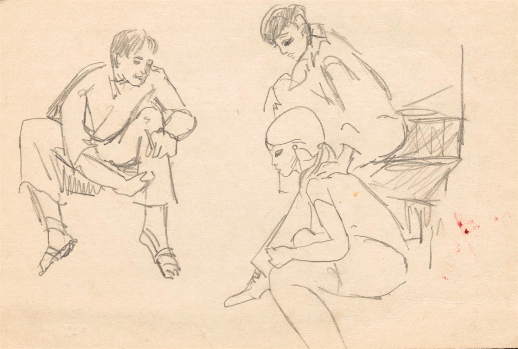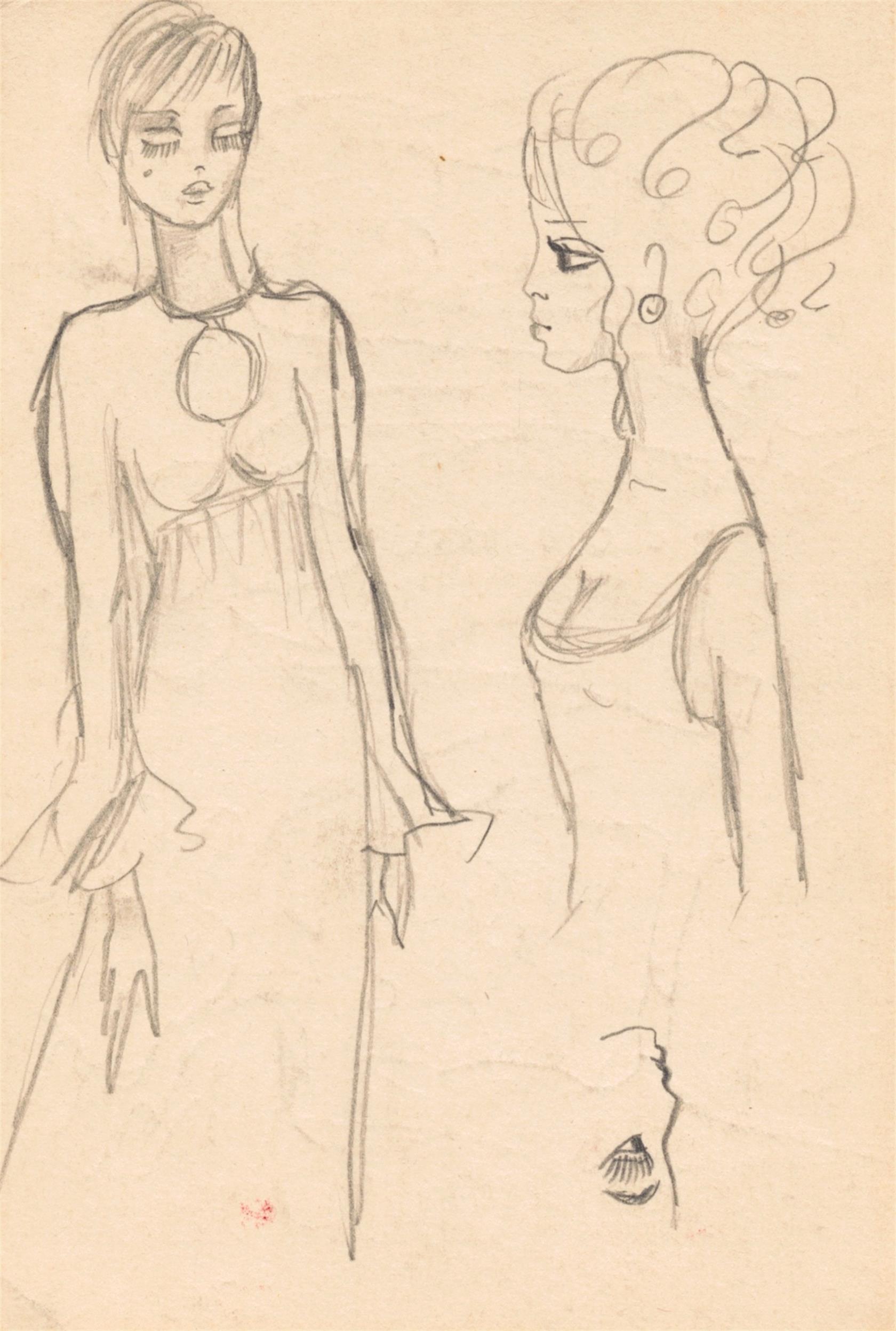 4x oboustranná kresba. 1x jednostranná kresba, volné listy