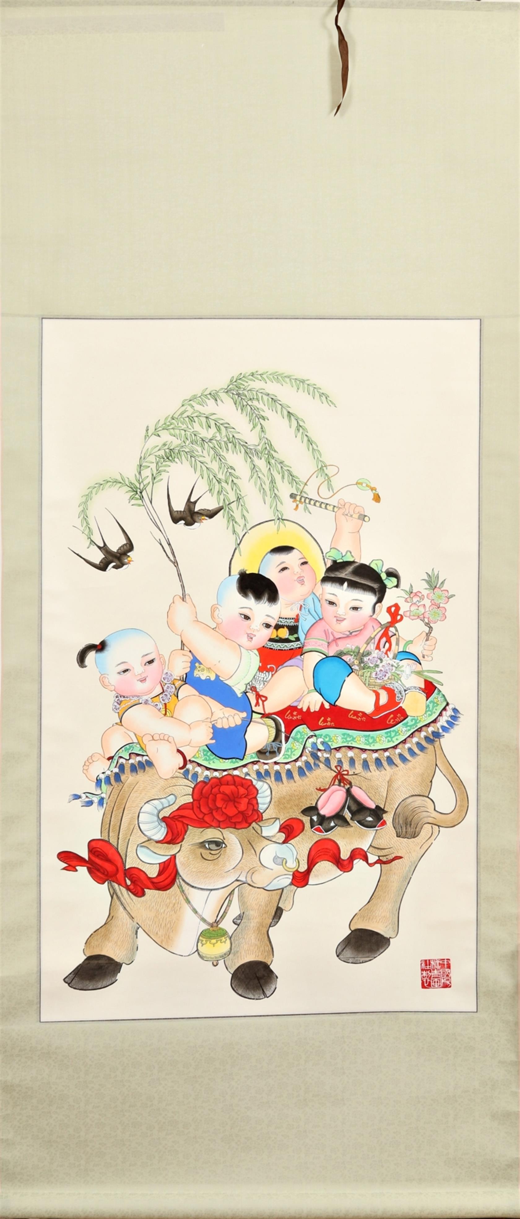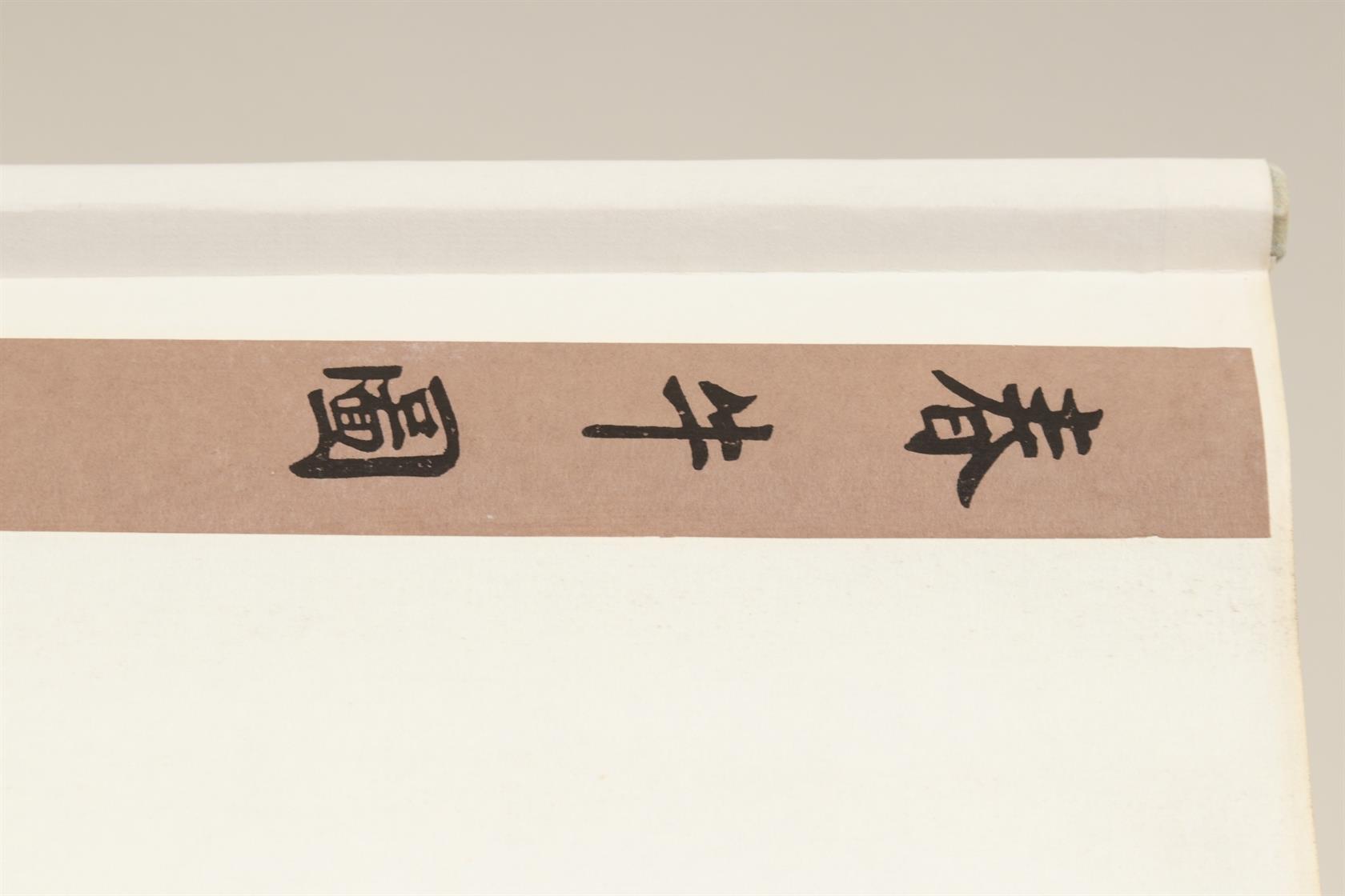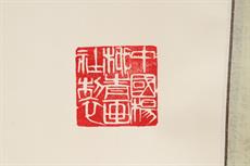 signováno razítkem vpravo dole, na reversu autorský popis a podpis, rolovací závěsný čínský obraz v původní signované etui