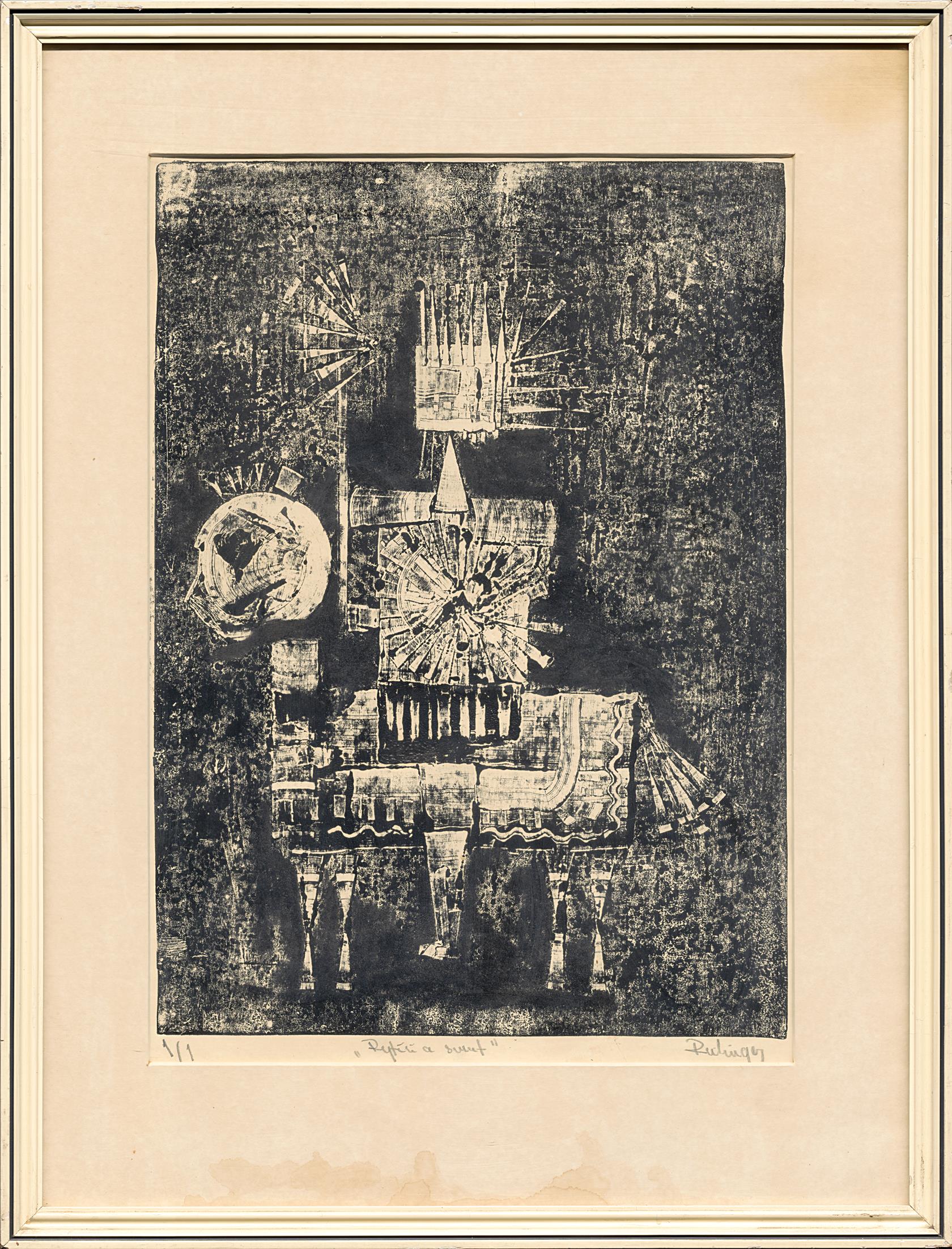 Signováno vpravo dole tužkou, vlevo dole číslováno 1/1, paspartováno, zaskleno a rámováno.