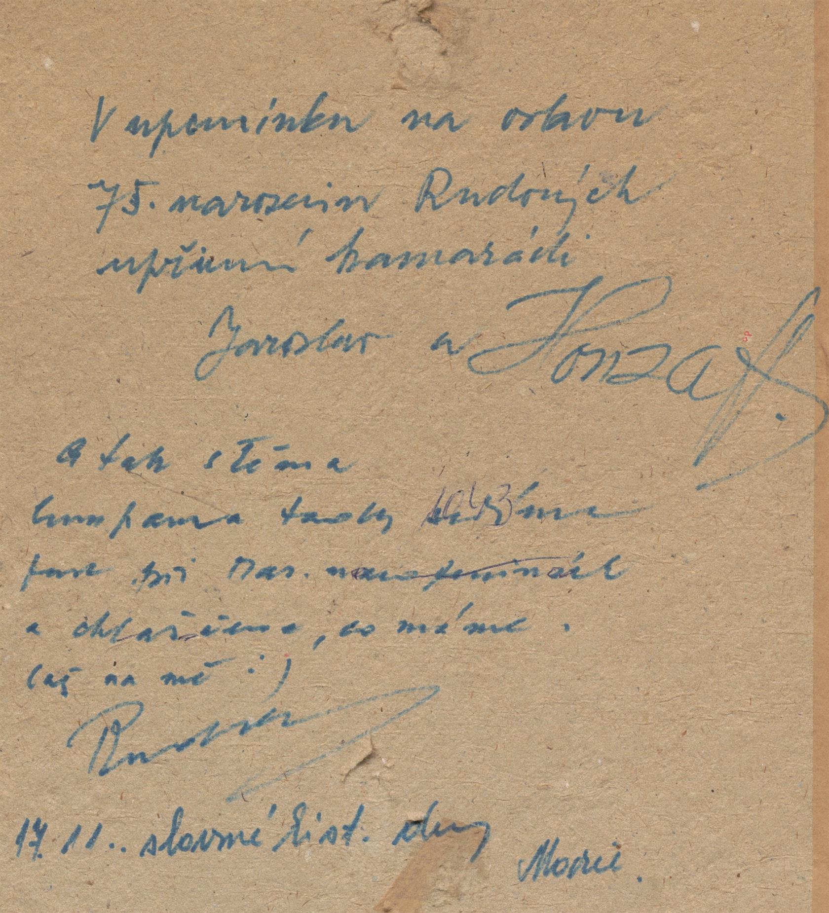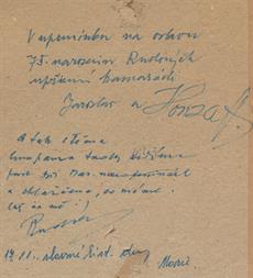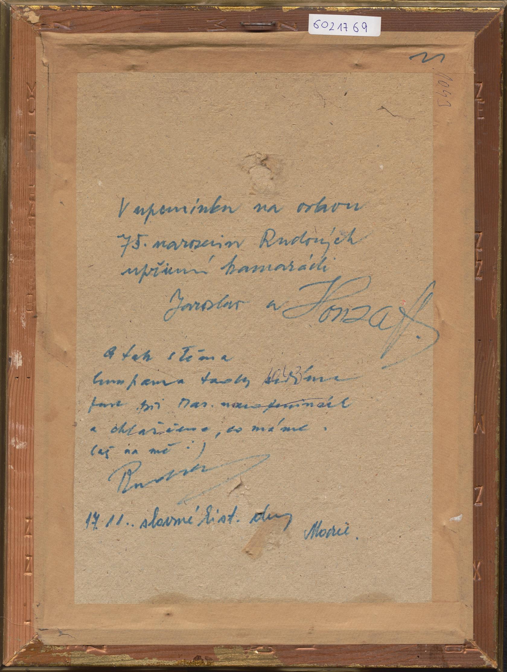 Na reversu věnování, rámováno.