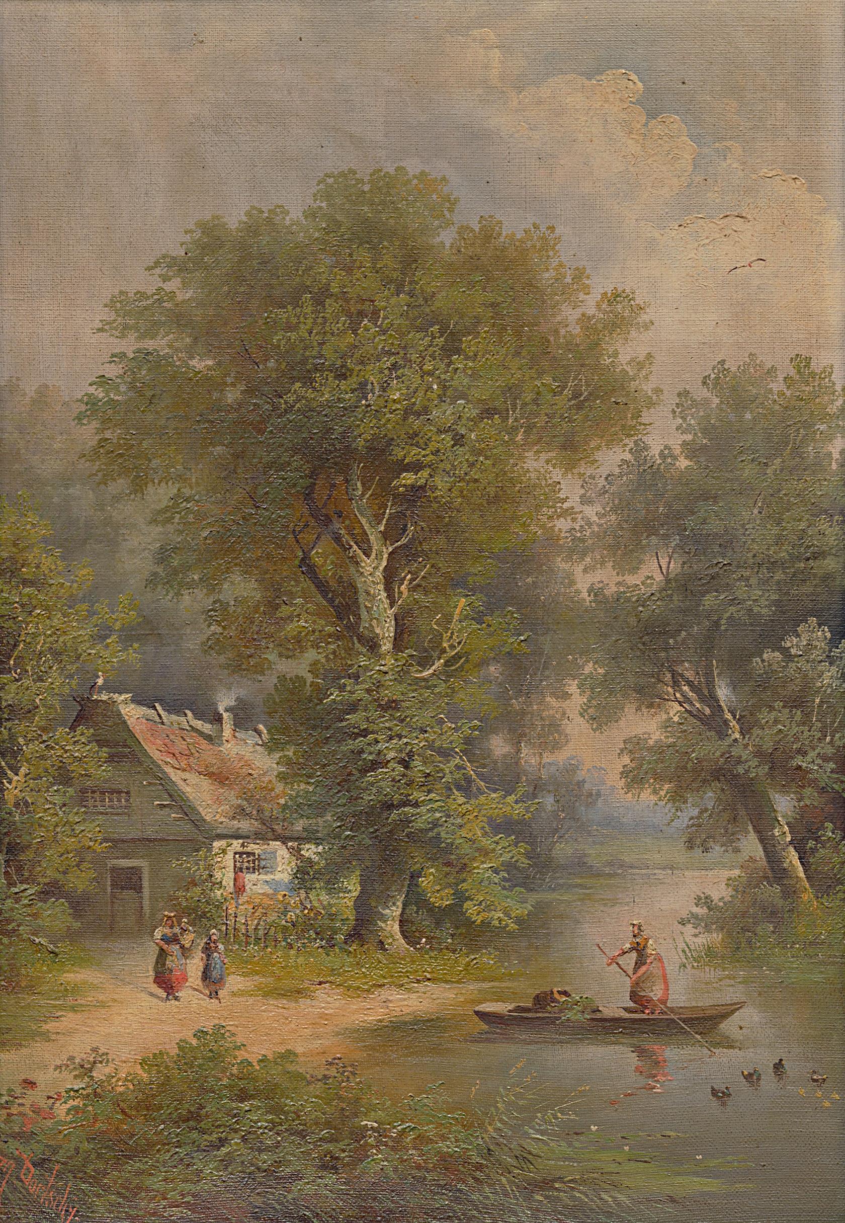 35. Krajina s dívkou na loďce