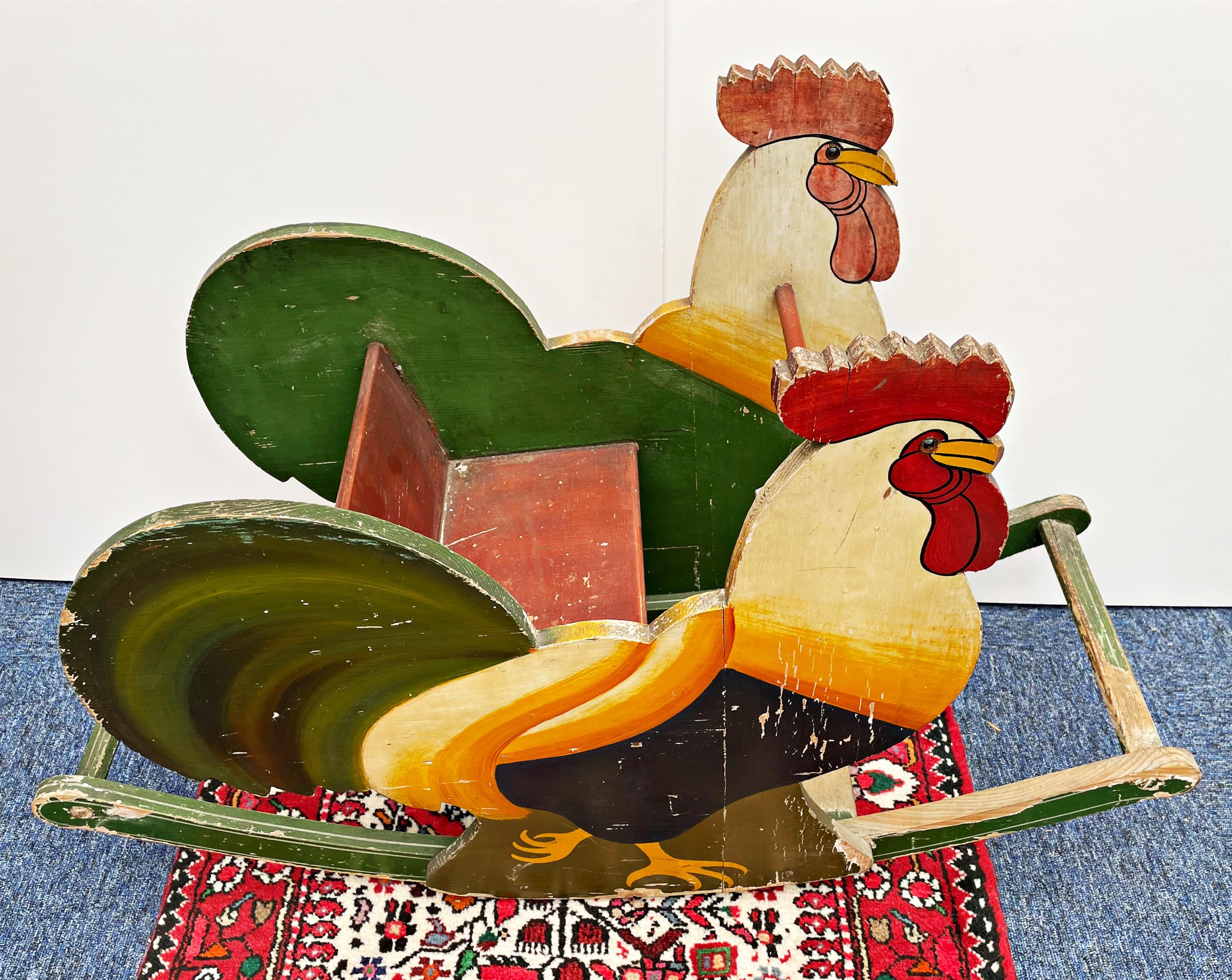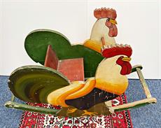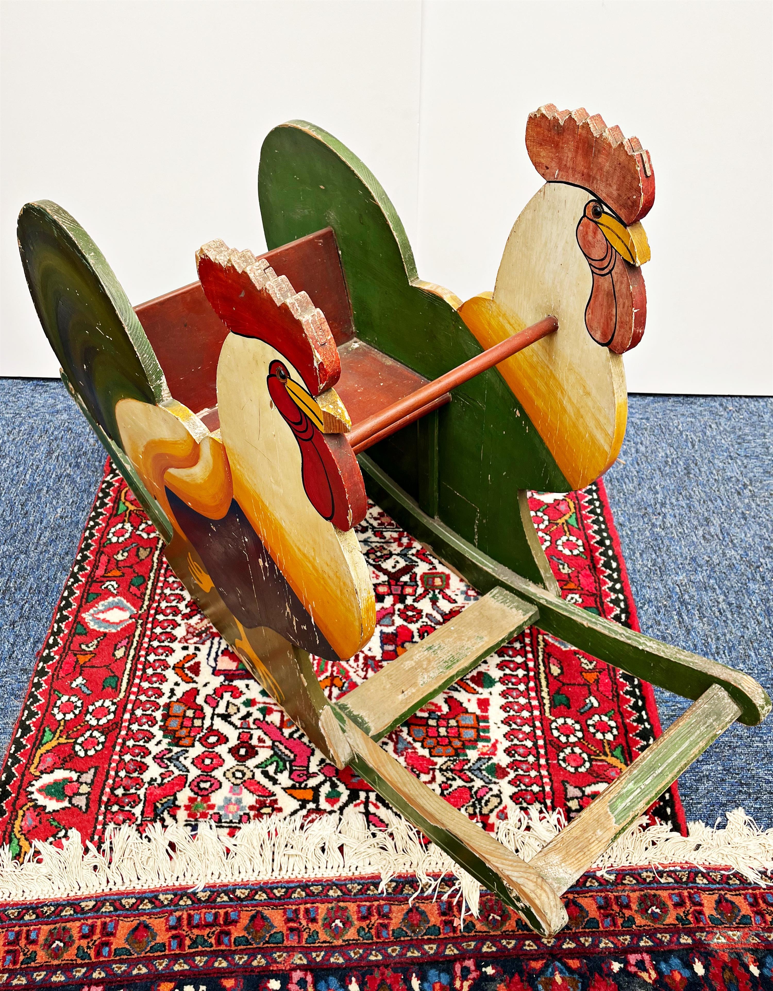 dřevěná malovaná houpací hračka pro děti ve tvaru kouhouta
