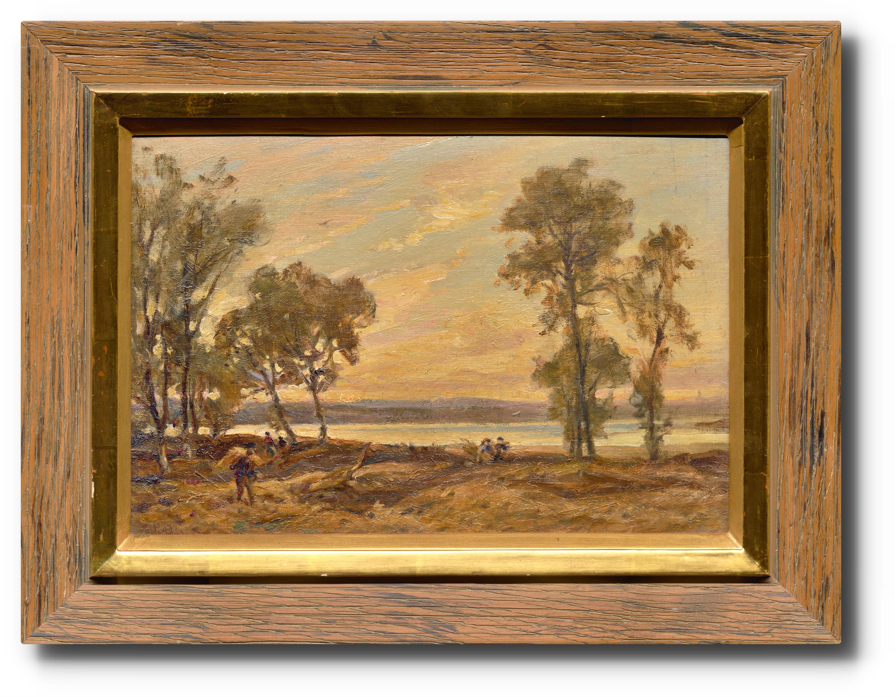 Pracující lidé u rybníka