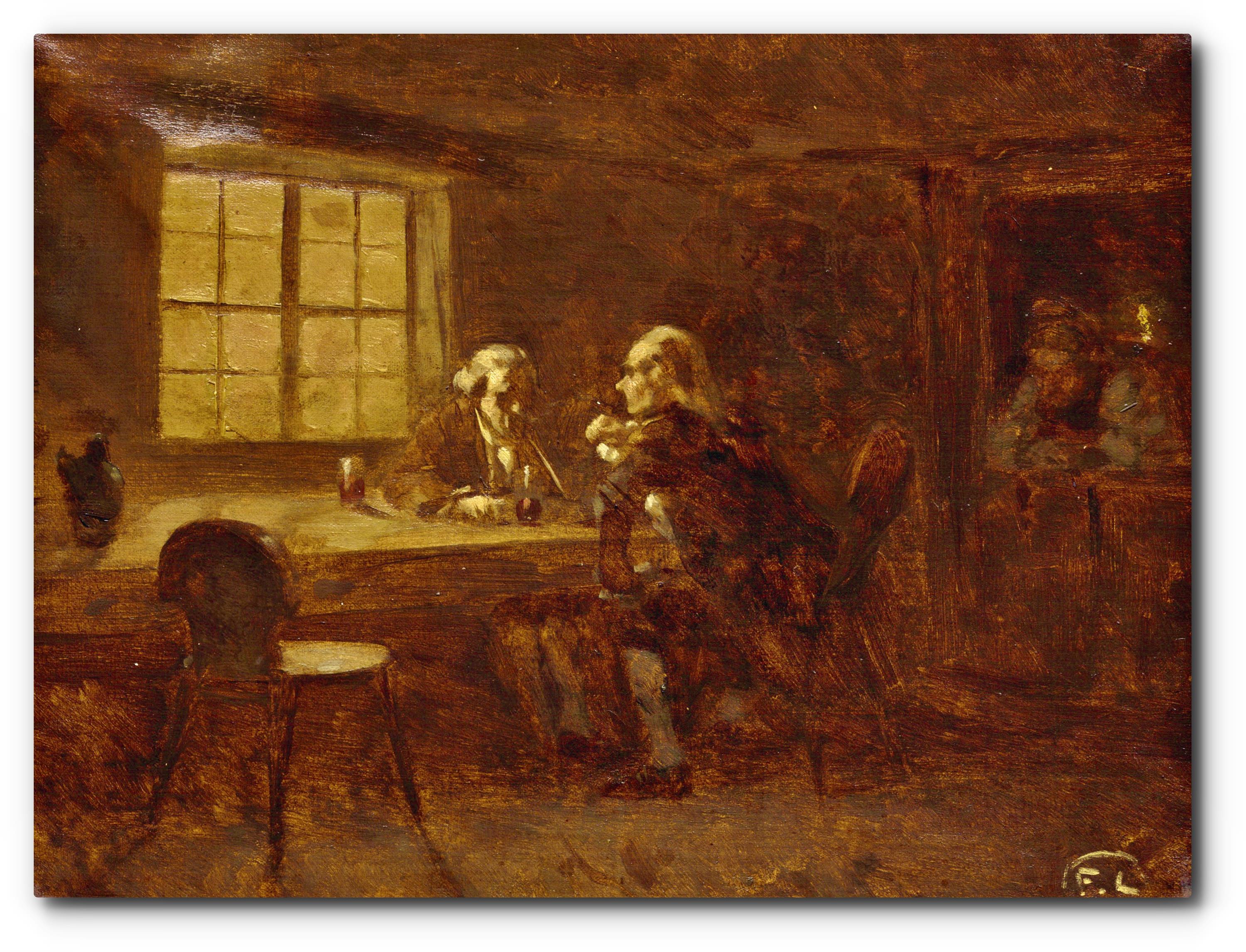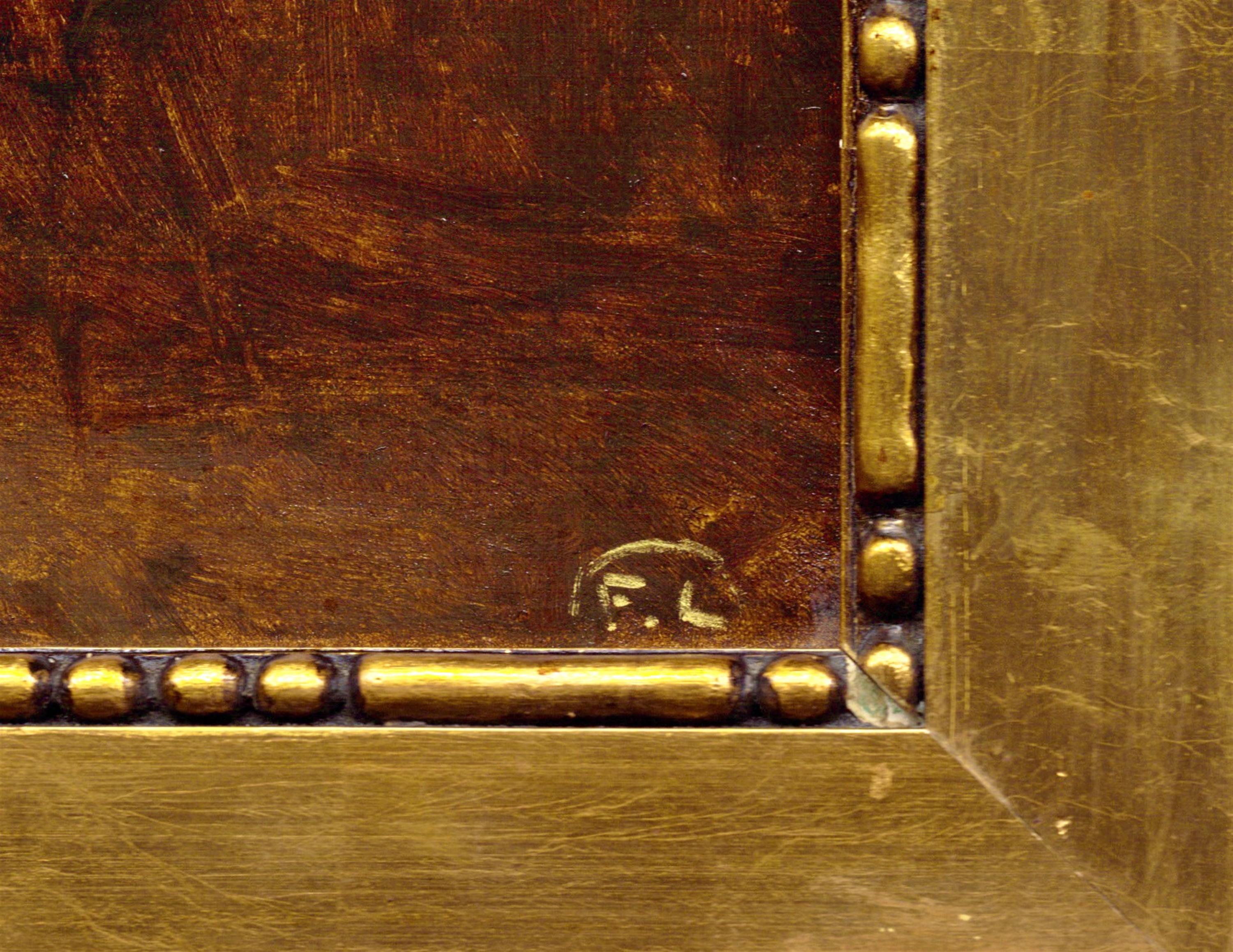 Monogramováno vpravo dole, plátno fixováno na kartonu, rámováno.