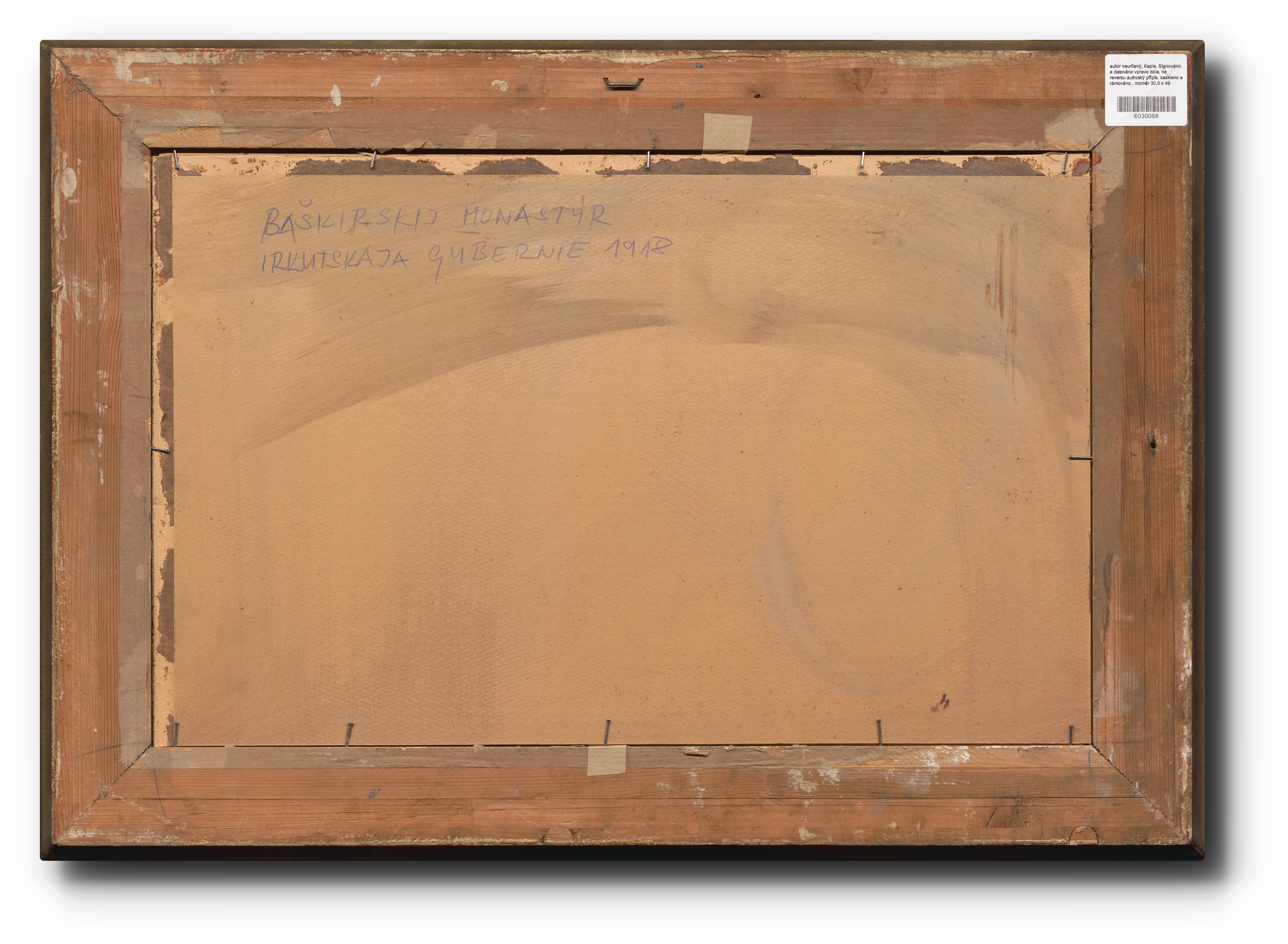 Signováno a datováno vpravo dole, na reversu autroský přípis, zaskleno a rámováno.