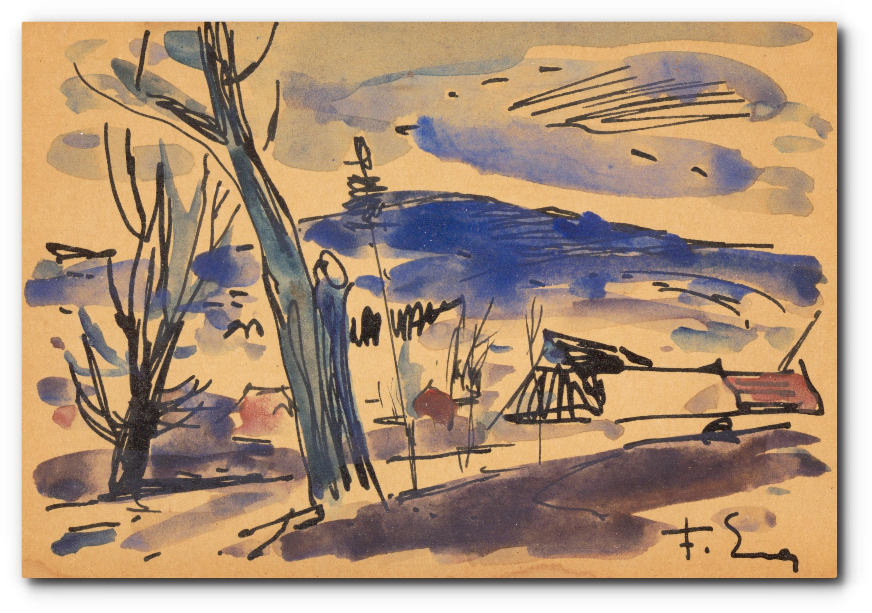 Monogramováno vpravo dole, paspartováno, zaskleno a rámováno.