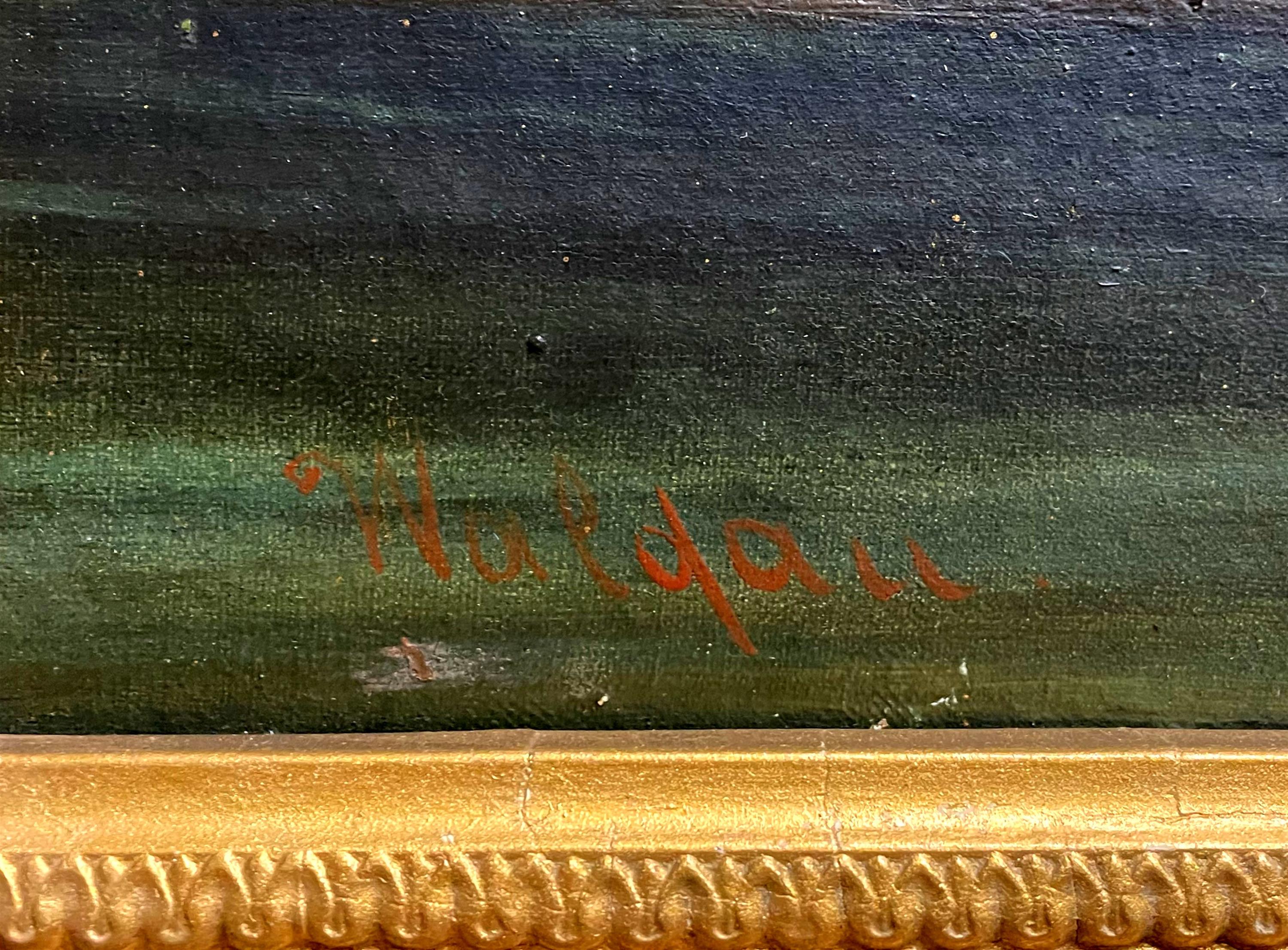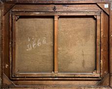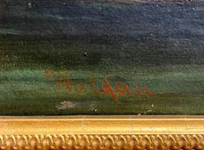 Signováno vlevo dole, protržené plátno, rámováno.