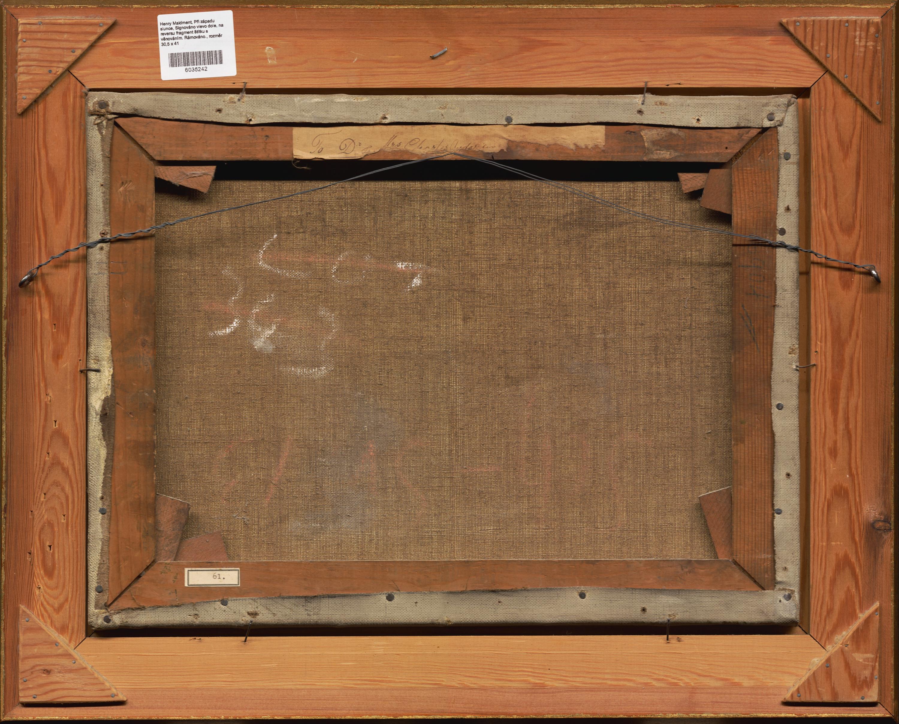 Signováno vlevo dole, na reversu fragment štítku s věnováním. Rámováno.