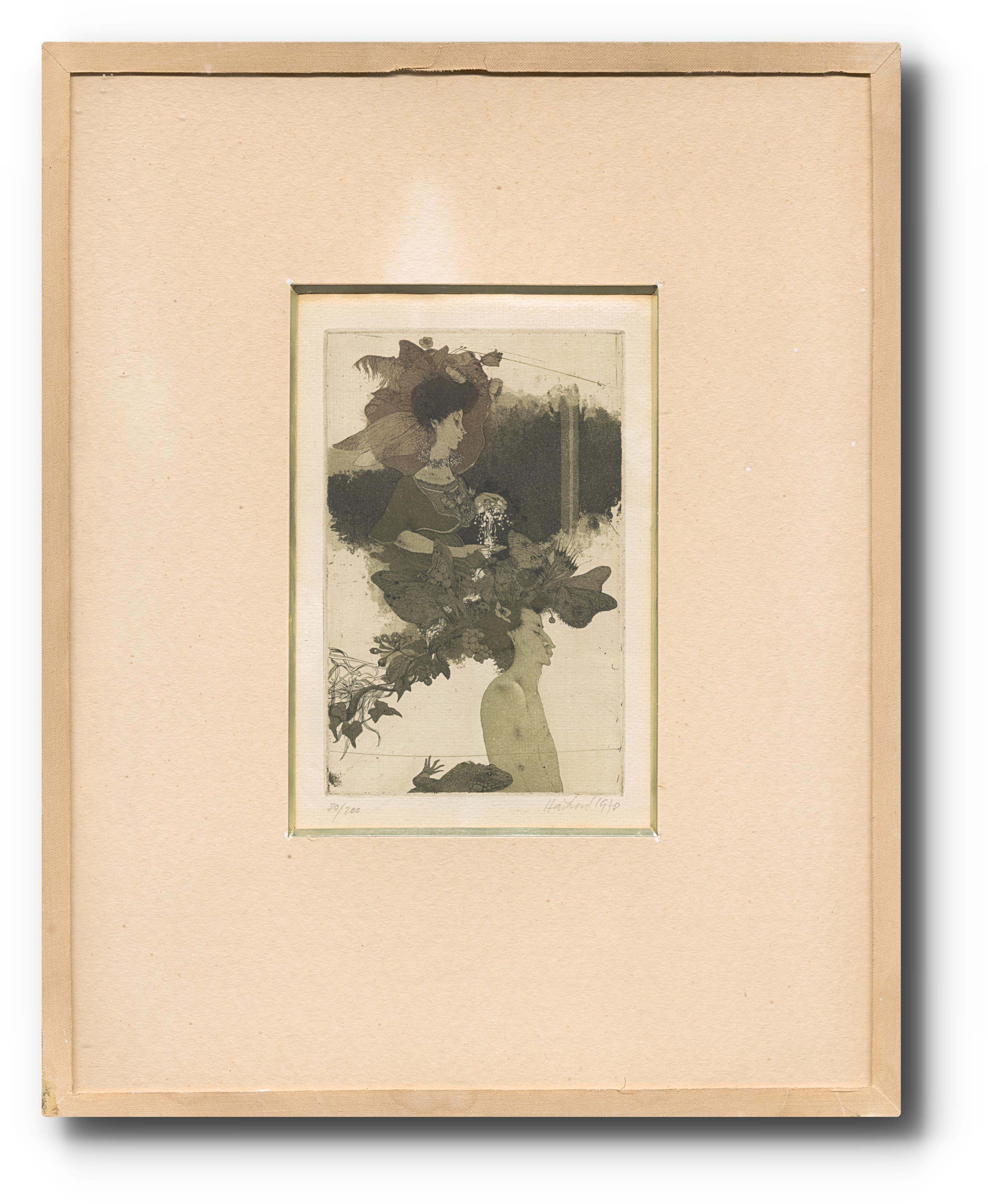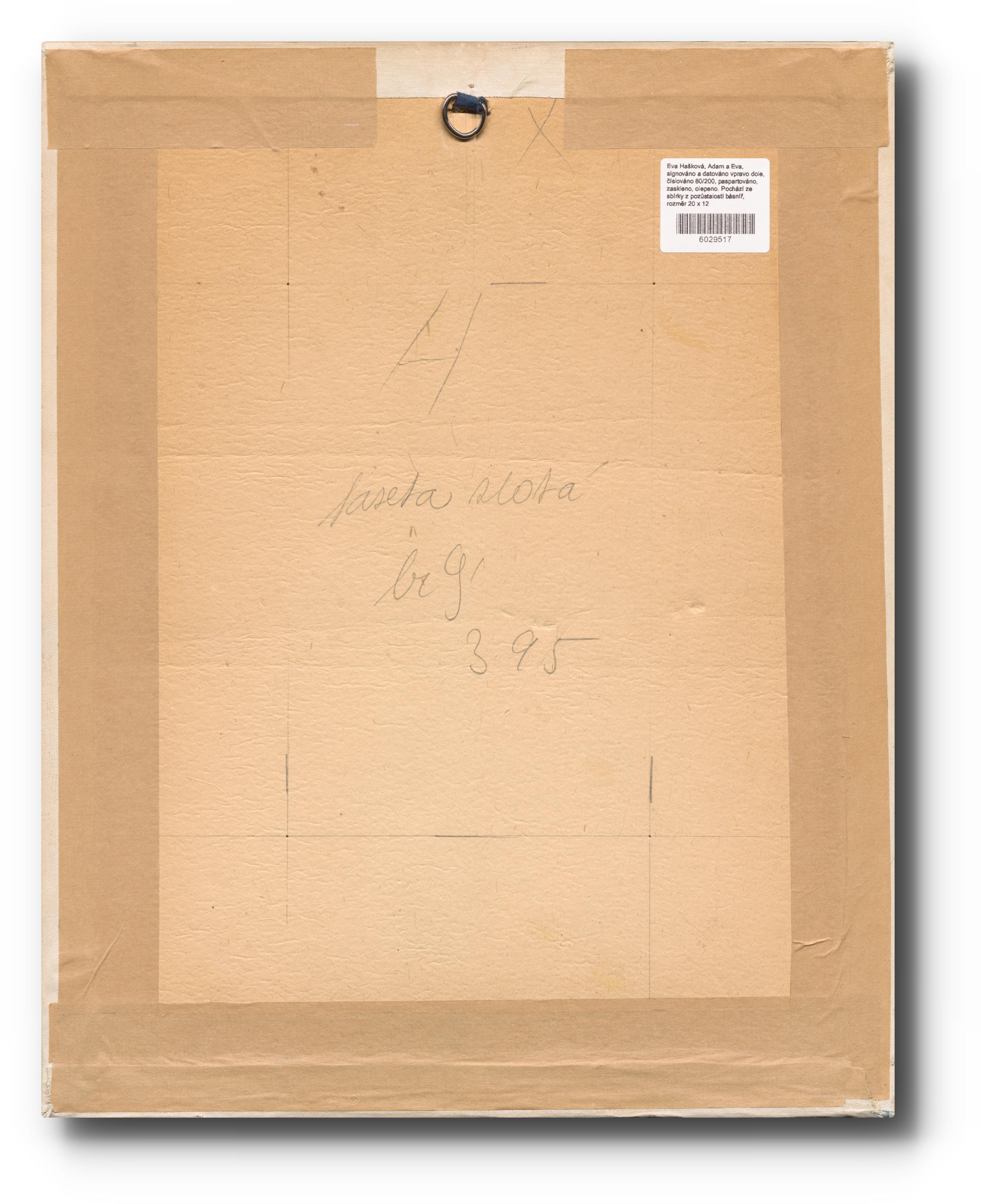 signováno a datováno vpravo dole, číslováno 80/200, paspartováno, zaskleno, olepeno. Pochází ze sbírky z pozůstalosti básnířky Karly Erbové.