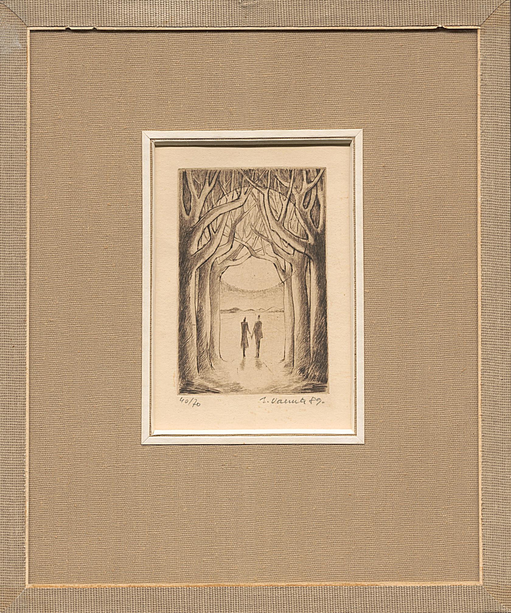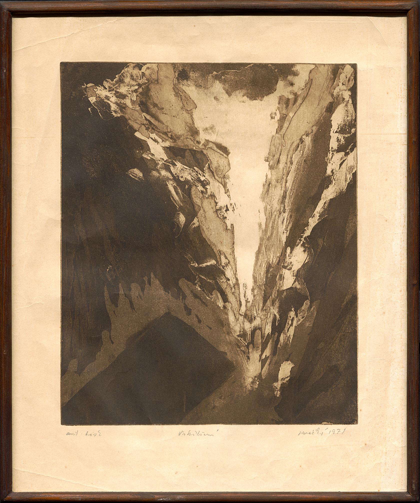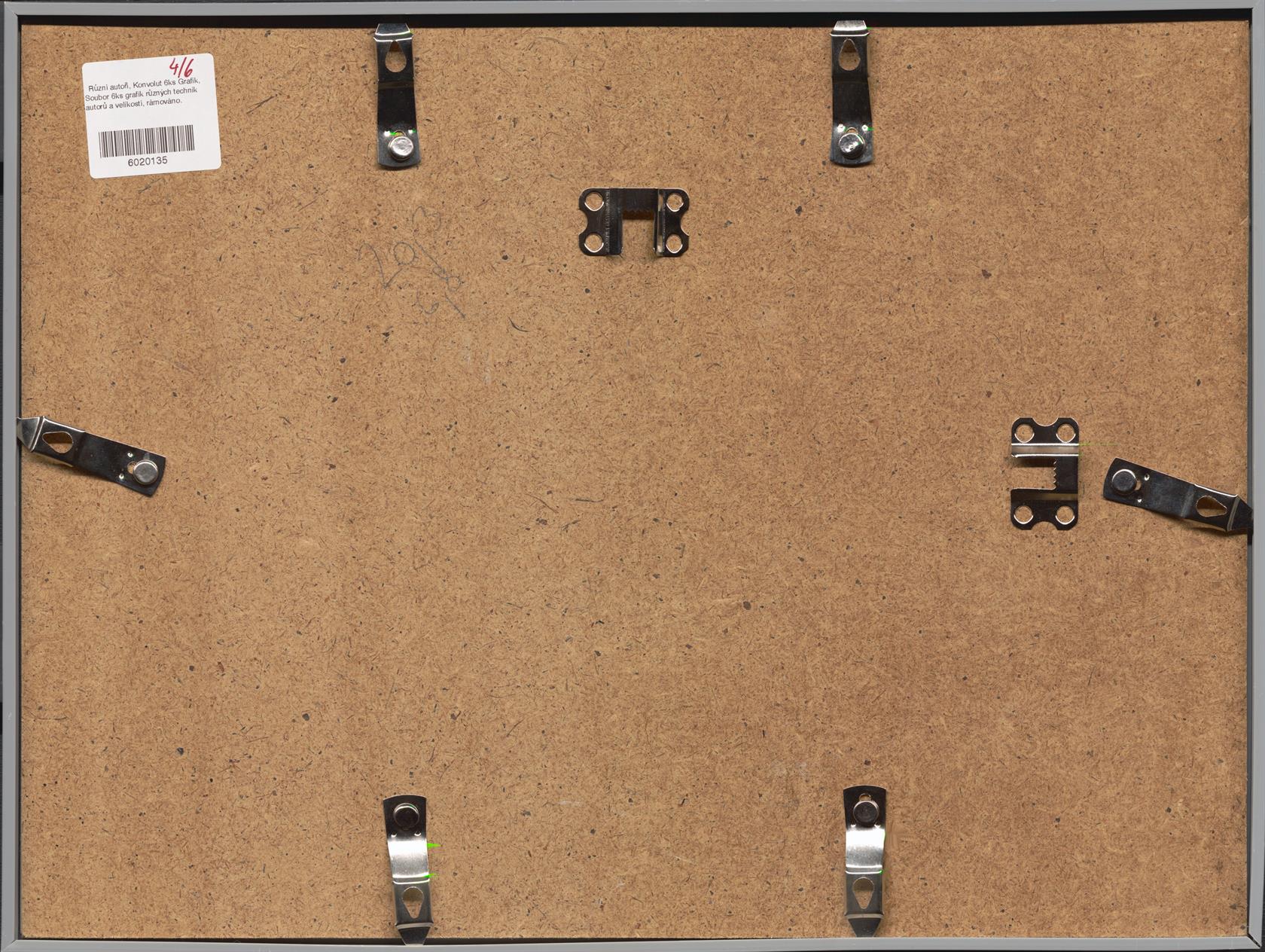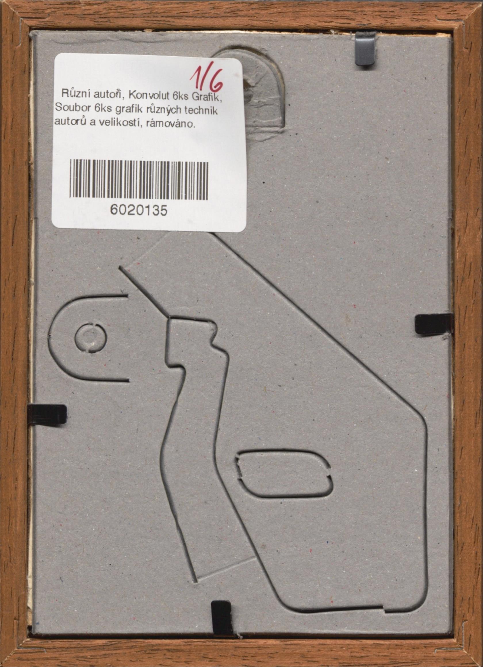 Soubor 6ks grafik různých technik autorů a velikostí, rámováno.