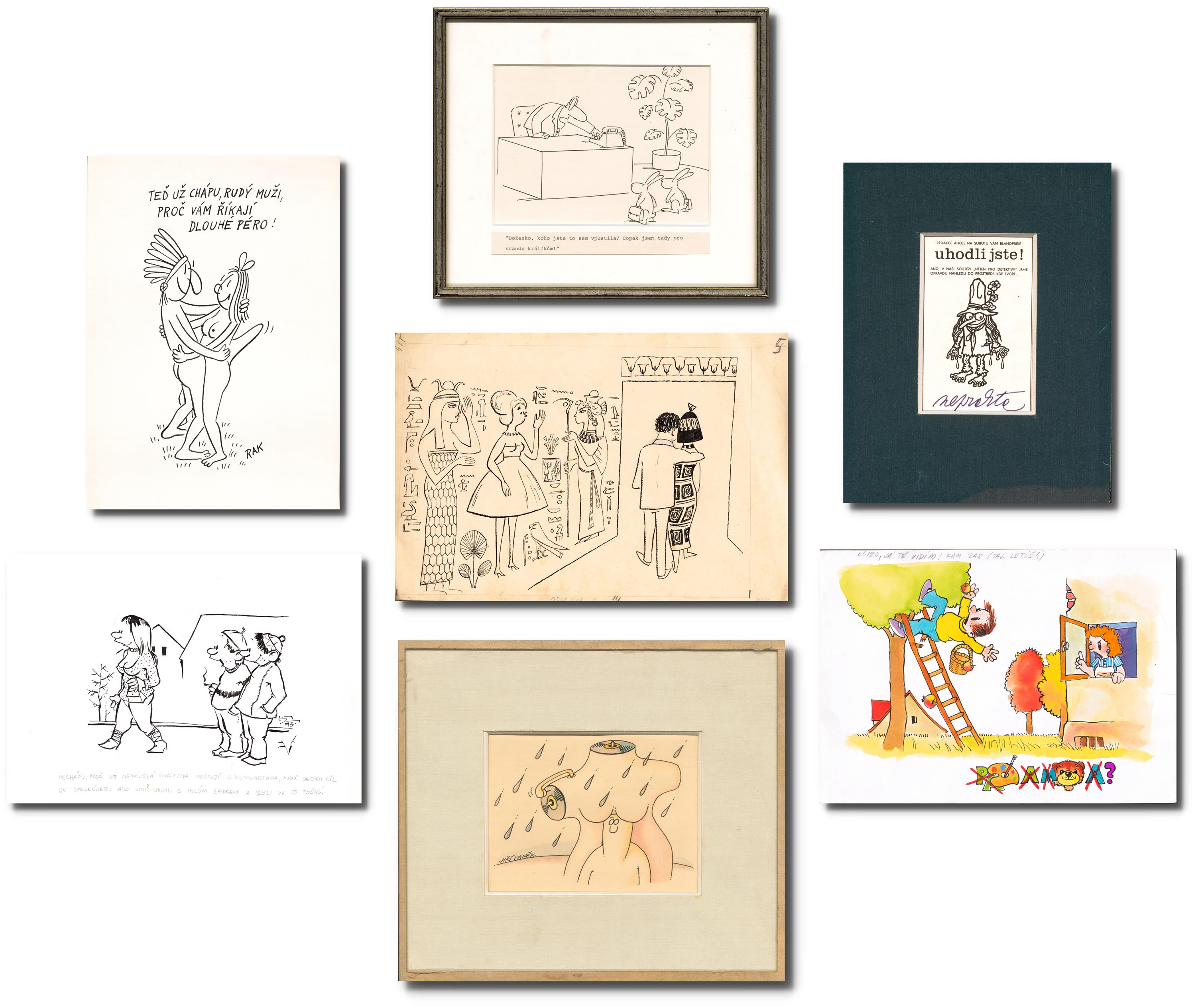 Sedm kusů kreslených vtipů různých autorů a rozměrů