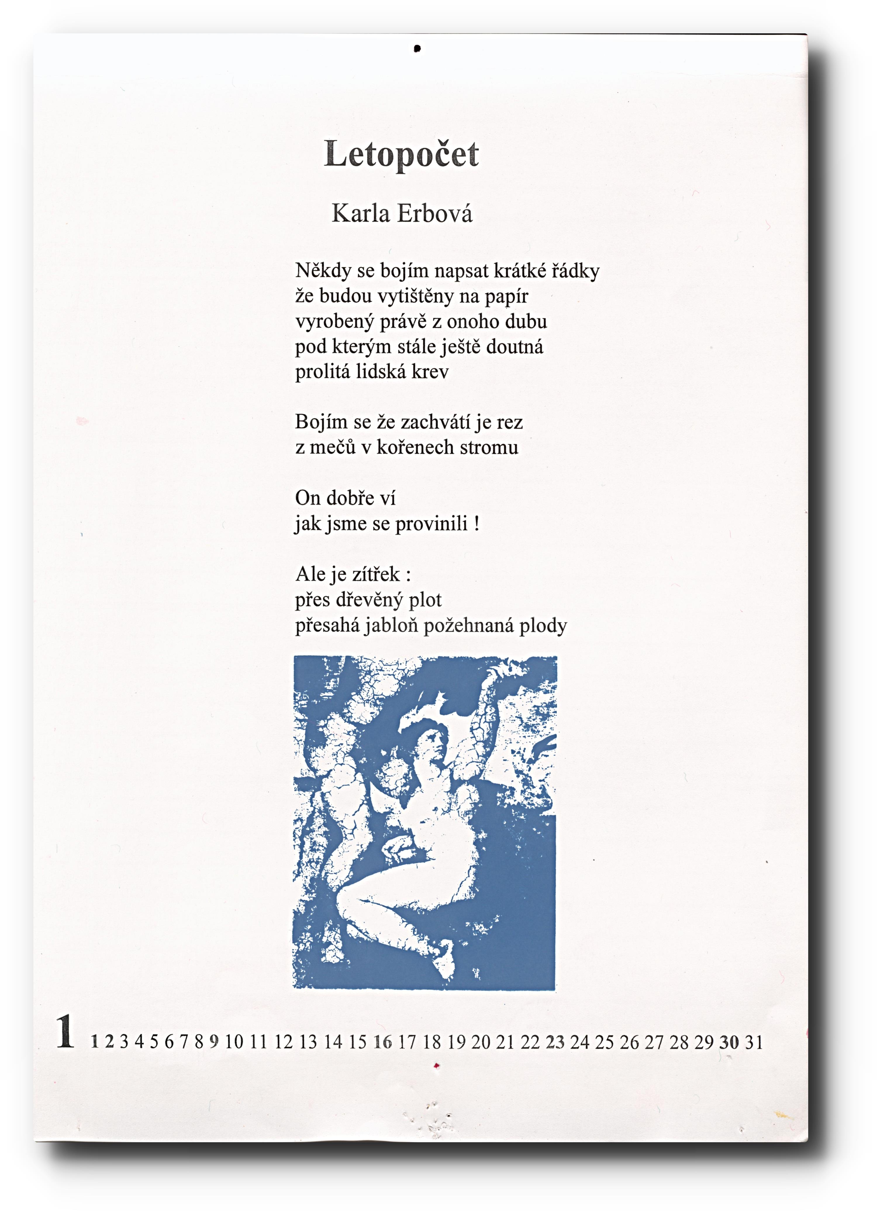 Signováno a částečně datováno (Kryštof Jiří, Marie Fictumová, Jiří Poslední a Tomáš Kůs). Pochází ze sbírky z pozůstalosti básnířky Karly Erbové.