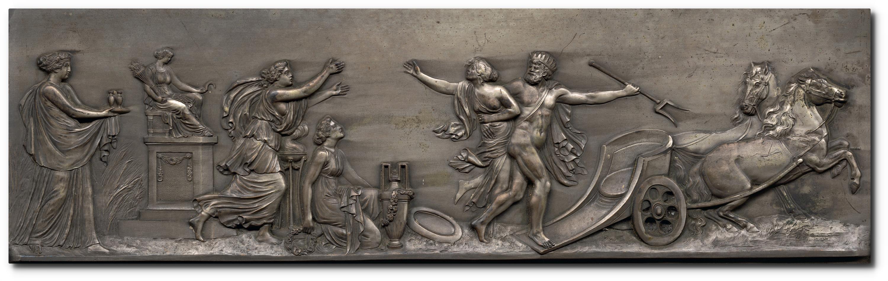 Kovový reliéf, rámováno.