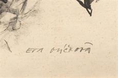 Signováno dole uprostřed, paspartováno, zaskleno a rámováno.