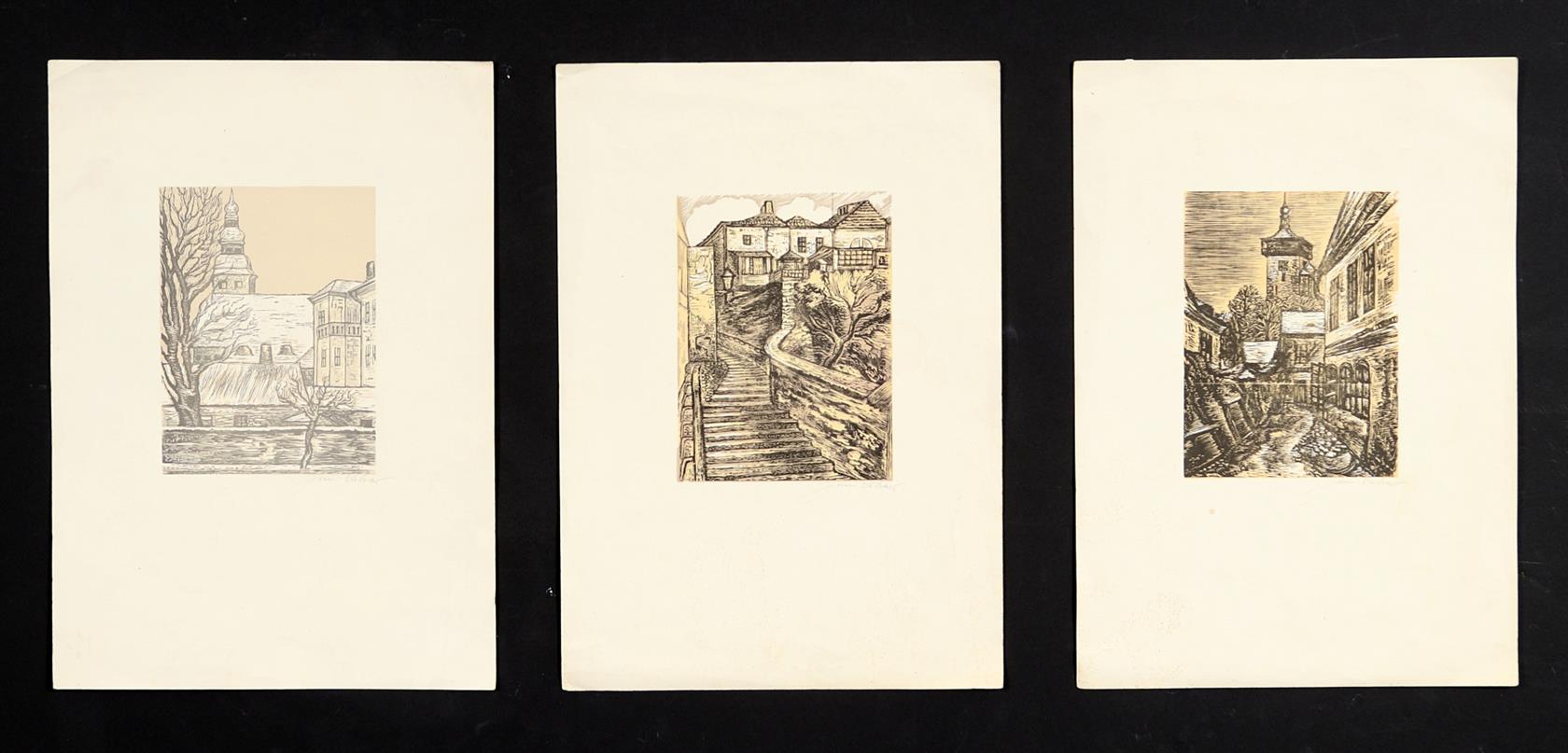 3 ks dřevořytů, volné listy, každý zvlášť signován vpravo dole