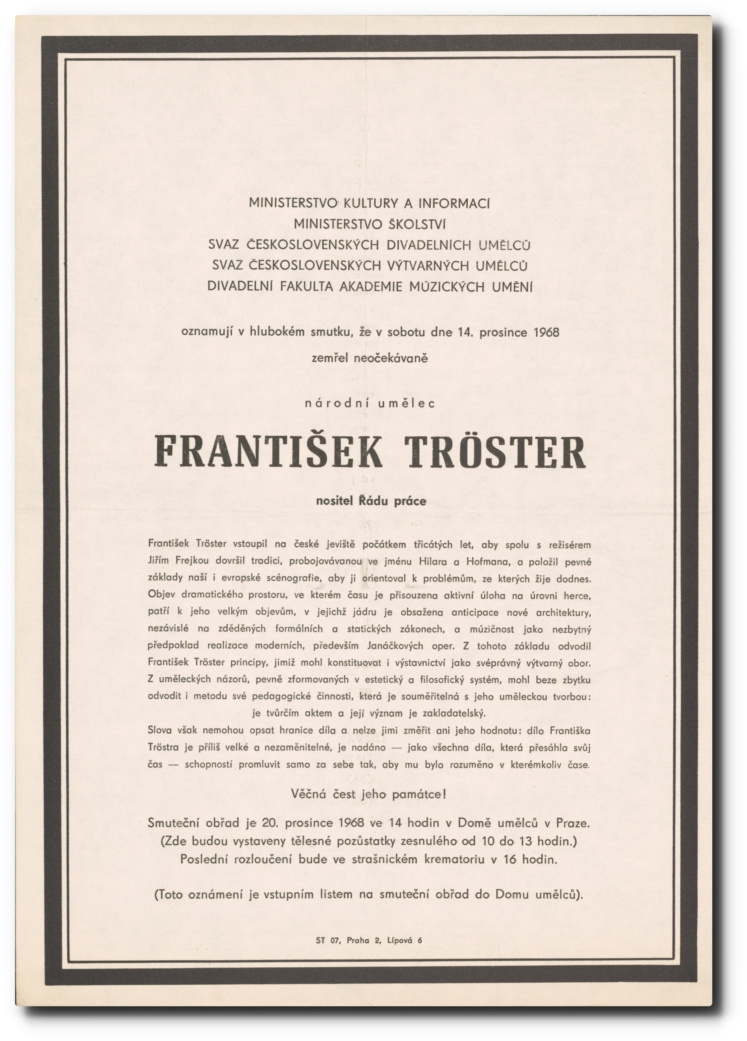 Originální smuteční oznámení.