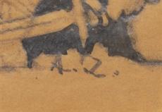 Monogramováno vlevo dole, paspartováno, zaskleno a rámováno.