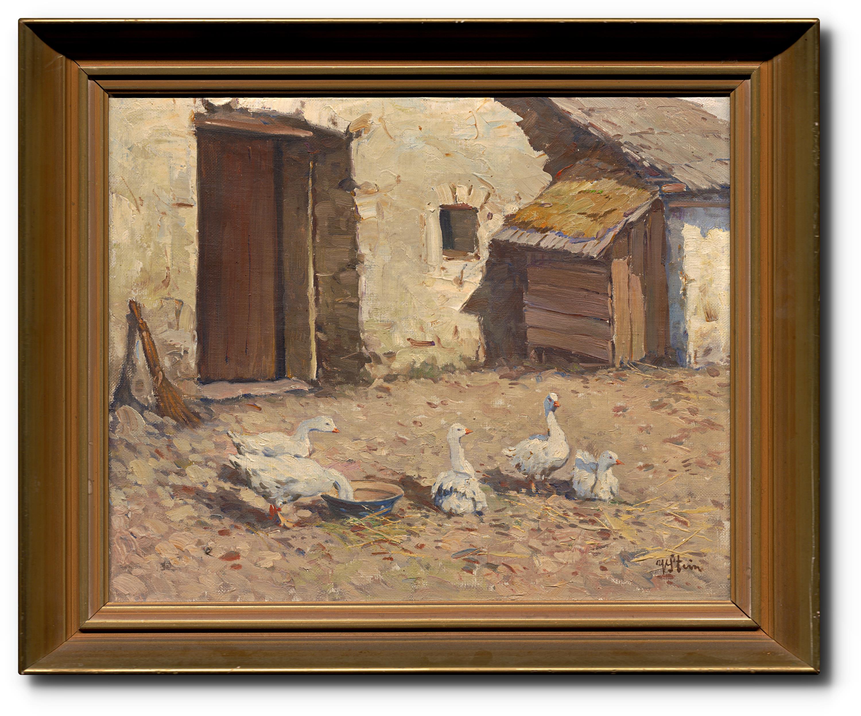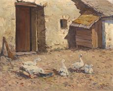 Husy na venkovském dvorku