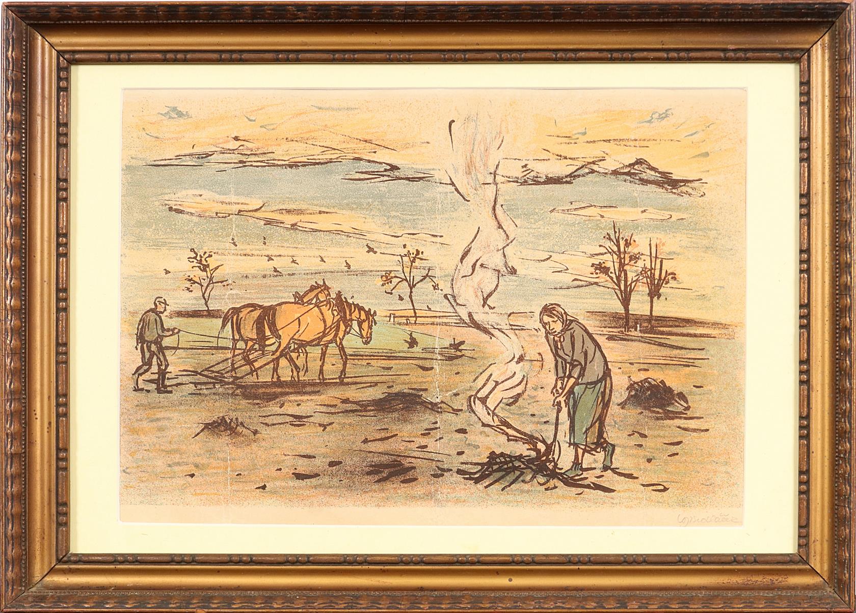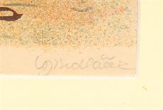 Signováno vpravo dole tužkou, papír přeložen. Paspartováno, zaskleno a rámováno.