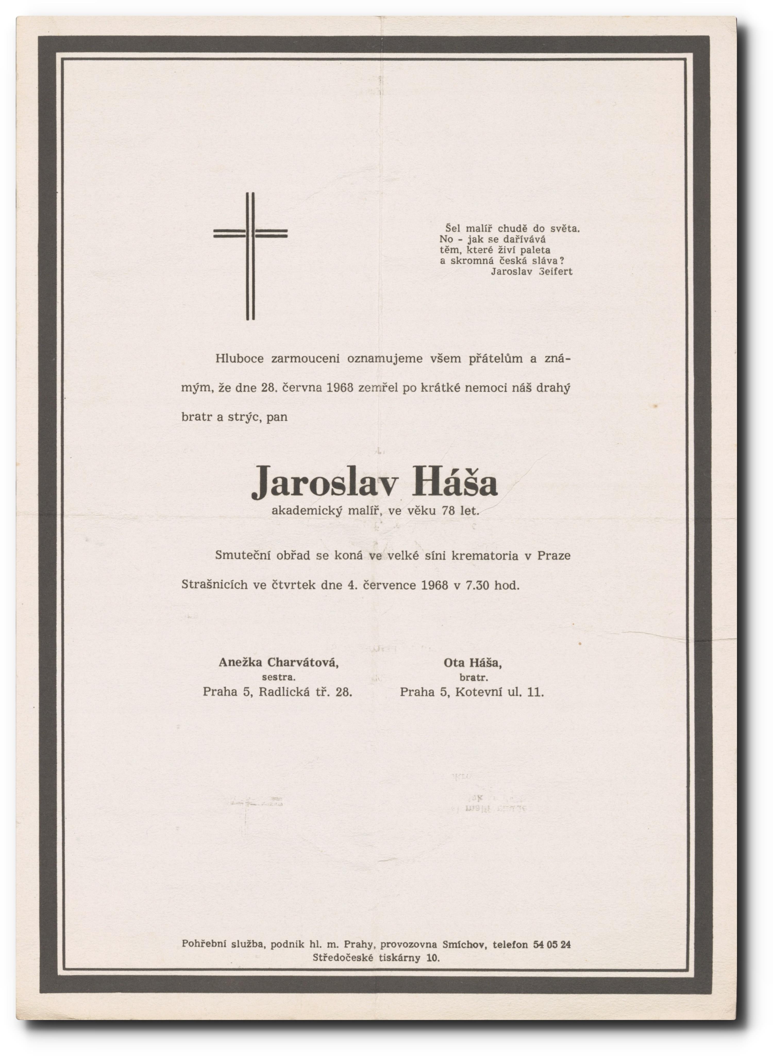Originální smuteční oznámení.