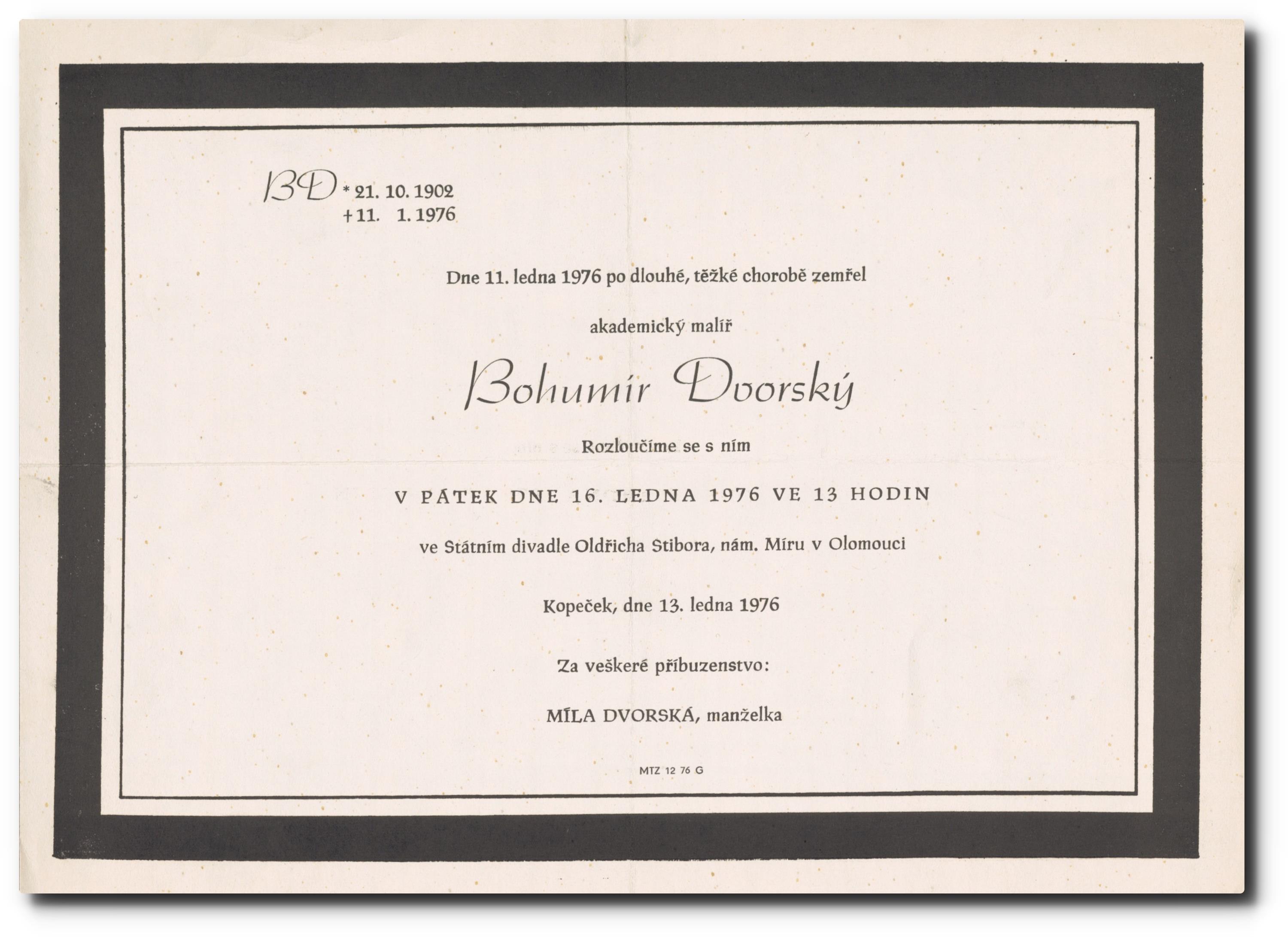Originální smuteční oznámení.