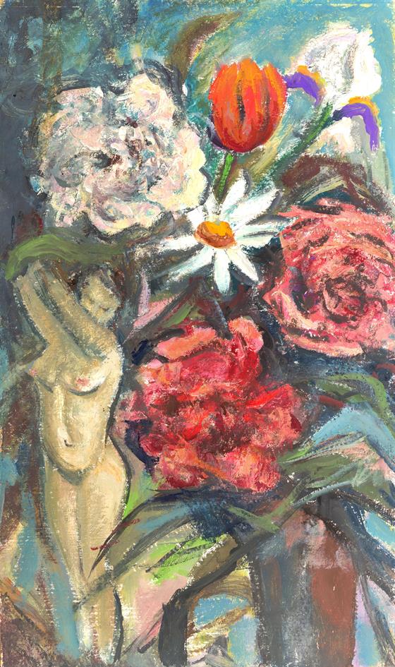Květiny s nahou ženou