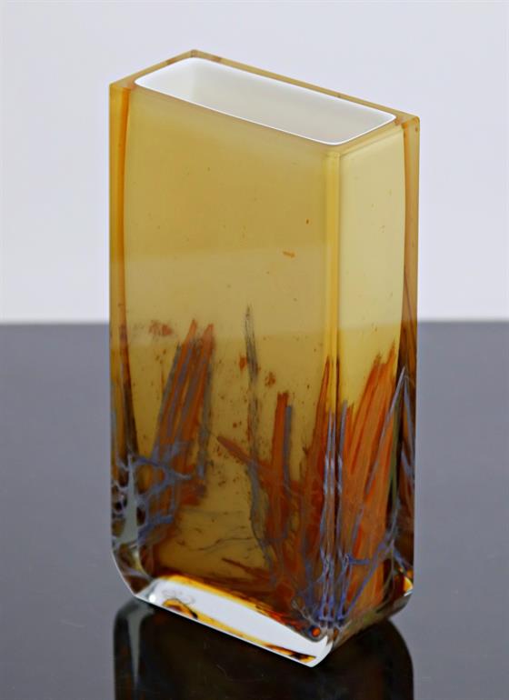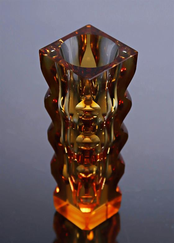 Skleněná broušená žlutá vázička značená
