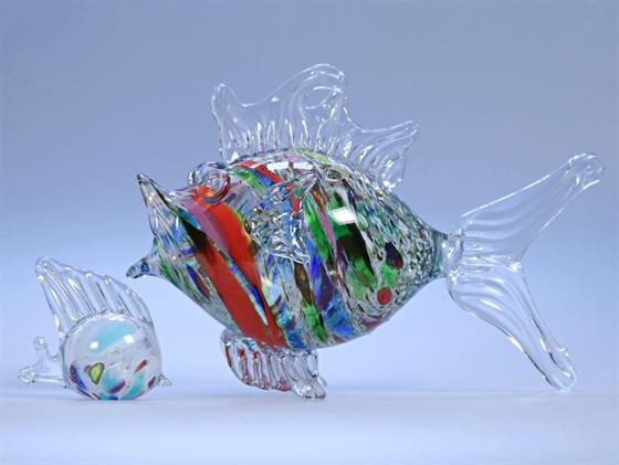 Plastika ze skla s dvěmi tyčinkami